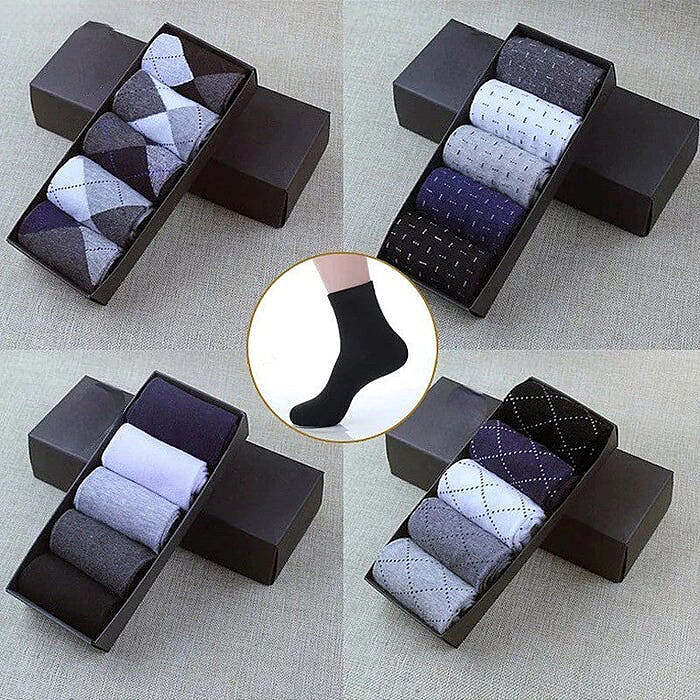 Anysox 5 Pairs Size 6-10 Casual Business Socks High Quality Cotton Breathable Elastic Line Design For Men