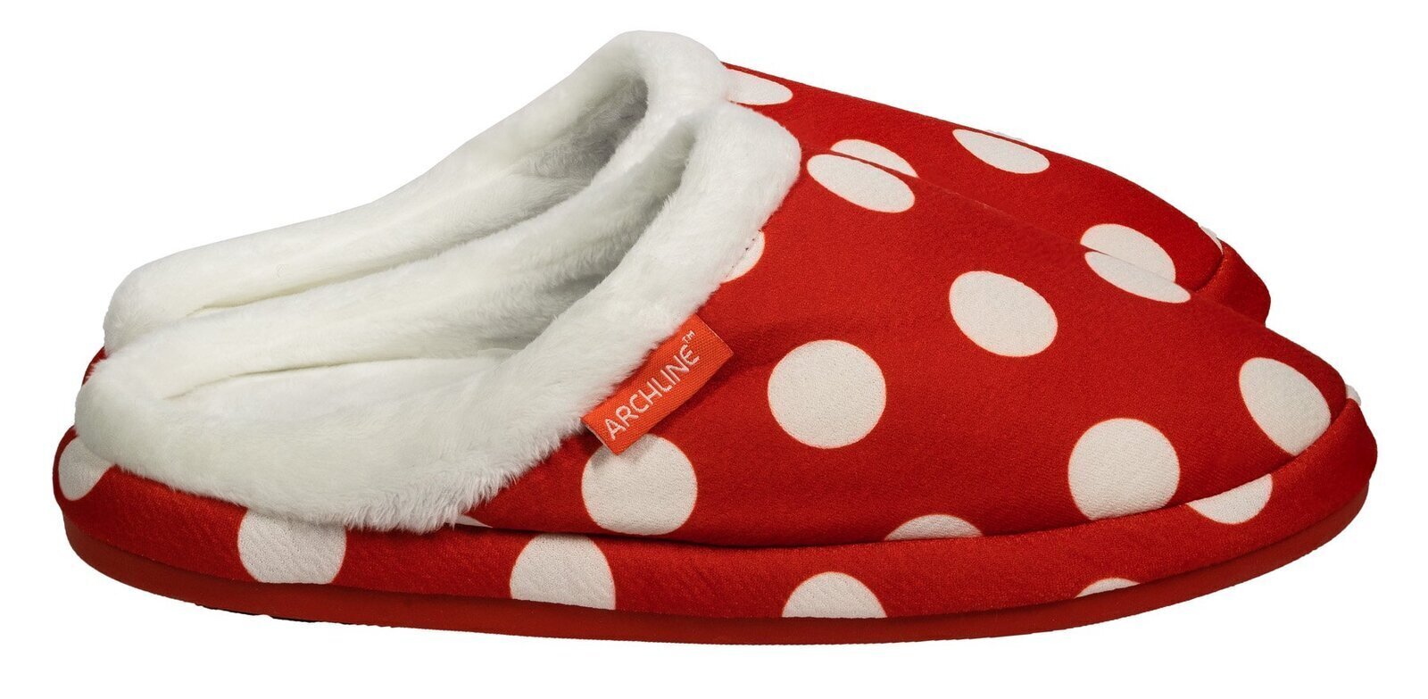 ARCHLINE Orthotic Slippers – Comfy Red Polka Dot Scuffs