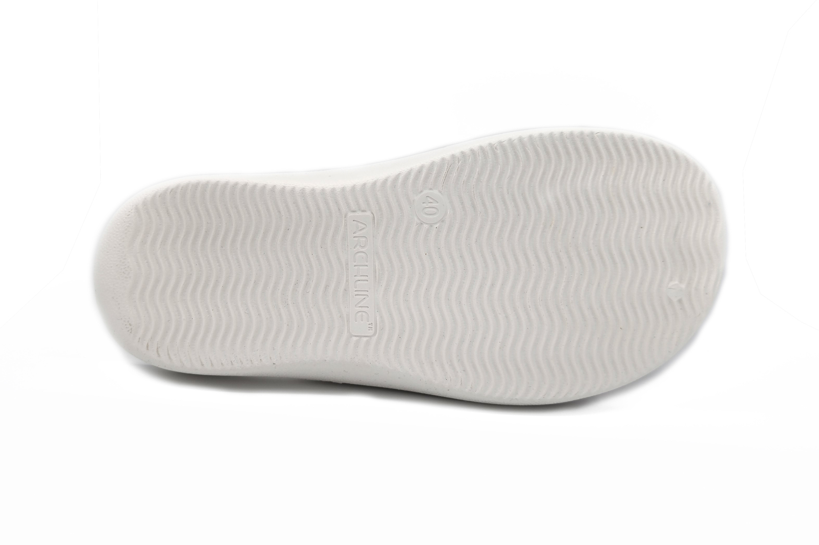 The Archline Rebound Orthotic Slides in White, sized Euro 39, are tailored for those who seek unparalleled foot support and comfort. Specifically designed to assist with conditions like plantar fasciitis, these slides elevate your footwear experience, offering both style and function.