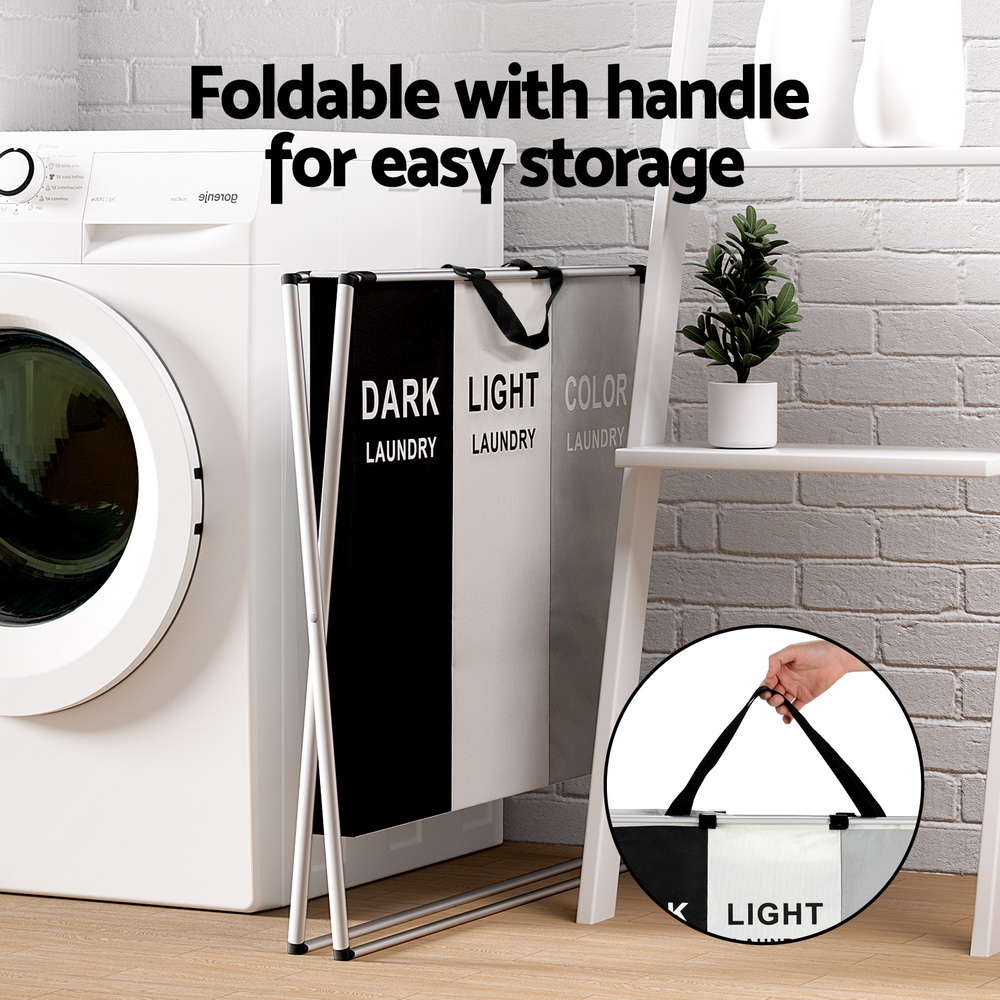 Artiss Laundry Basket Hamper Large Foldable Washing Clothes Storage 3 Sections