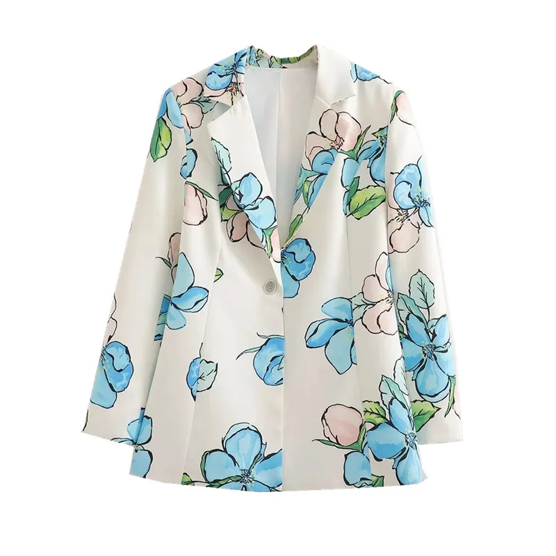 Autumn Pastel Floral Print Blazer Jacket – One-Button Slim Fit