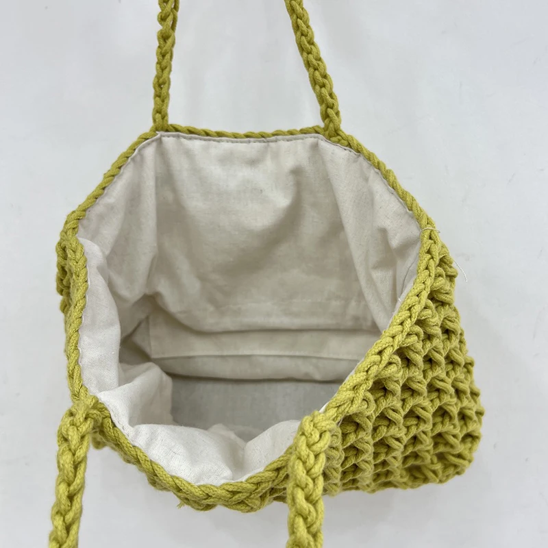 - Crafted with care, this tote bag is made from durable nylon cord and features a charming cutout design that’s both stylish and breathable. Each bag is unique, showcasing the quality of hand-made crochet.