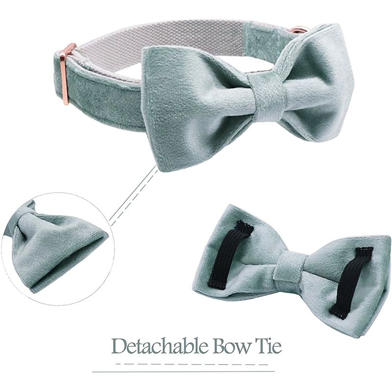 Unlike most bowties made for dogs, these are traditional double bowties. Each bowtie is hand sewn and attached to collar using elastic strap. The bowtie can be attached to any collar without any alterations to the collar itself. Bowties are not machine washable but can be removed from collar and rinsed with water and mild soap.