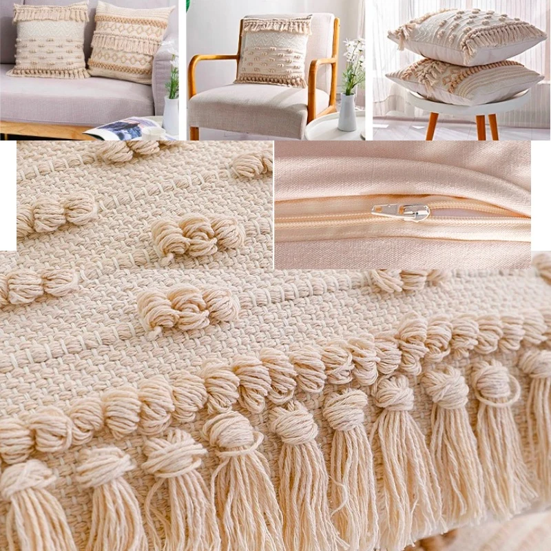 Bring a touch of bohemian charm to your home with the Boho Tassel Pillow Handmade Cushion Case, exclusively available at Kouwi.com. Perfect for sofas, chairs, or bedding, this decorative pillow cover effortlessly combines a laid-back aesthetic with a hint of modern elegance. Featuring a beautiful linen color and handcrafted tassel details, this cushion cover is the ultimate accessory to elevate any living space.