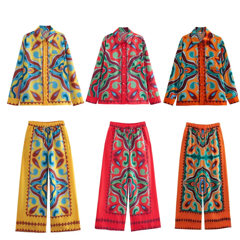 Channel bohemian chic vibes with our Boojee Boho print Women’s Silky Satin loungewear Shirt and Pant Set from Kouwi Marketplace.