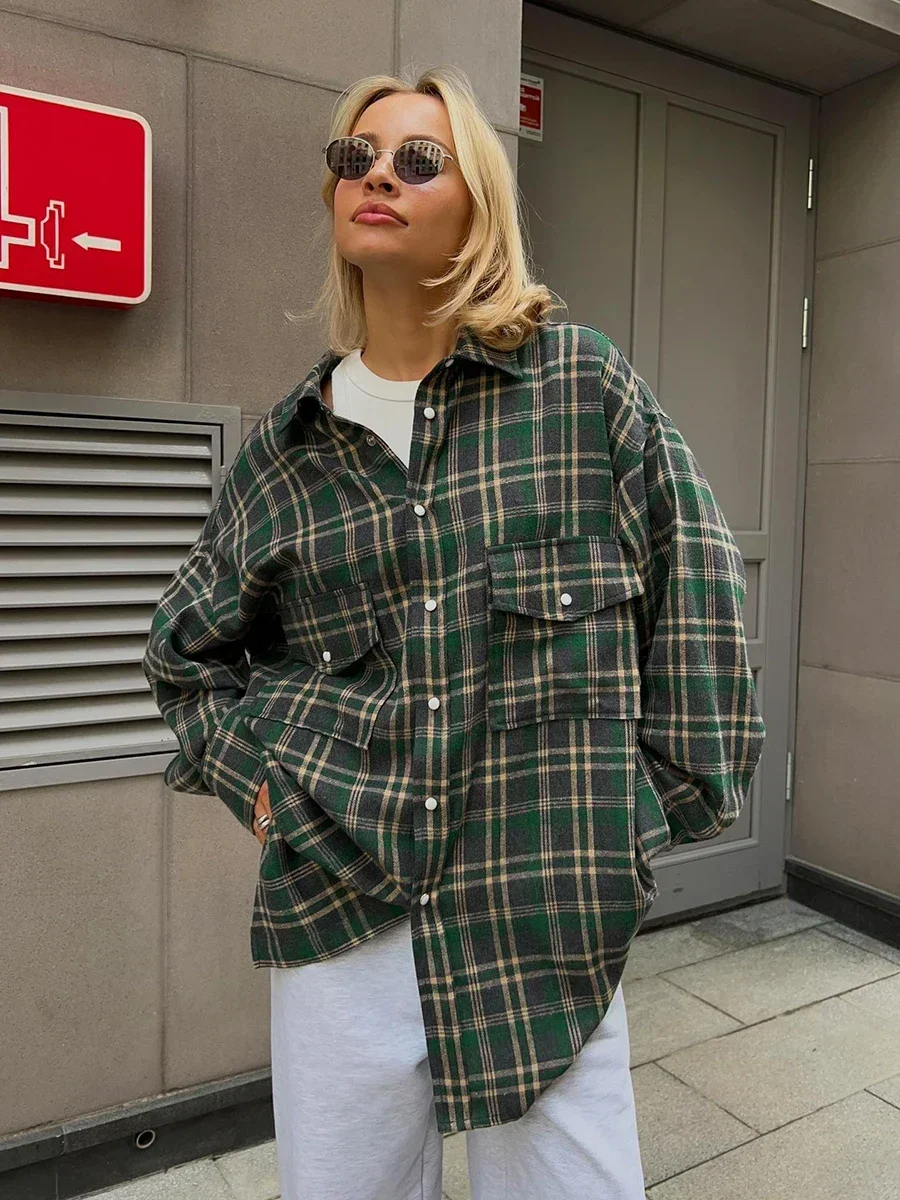 Bornlads Vintage Loose Plaid Long Sleeve Women’s Shirt
