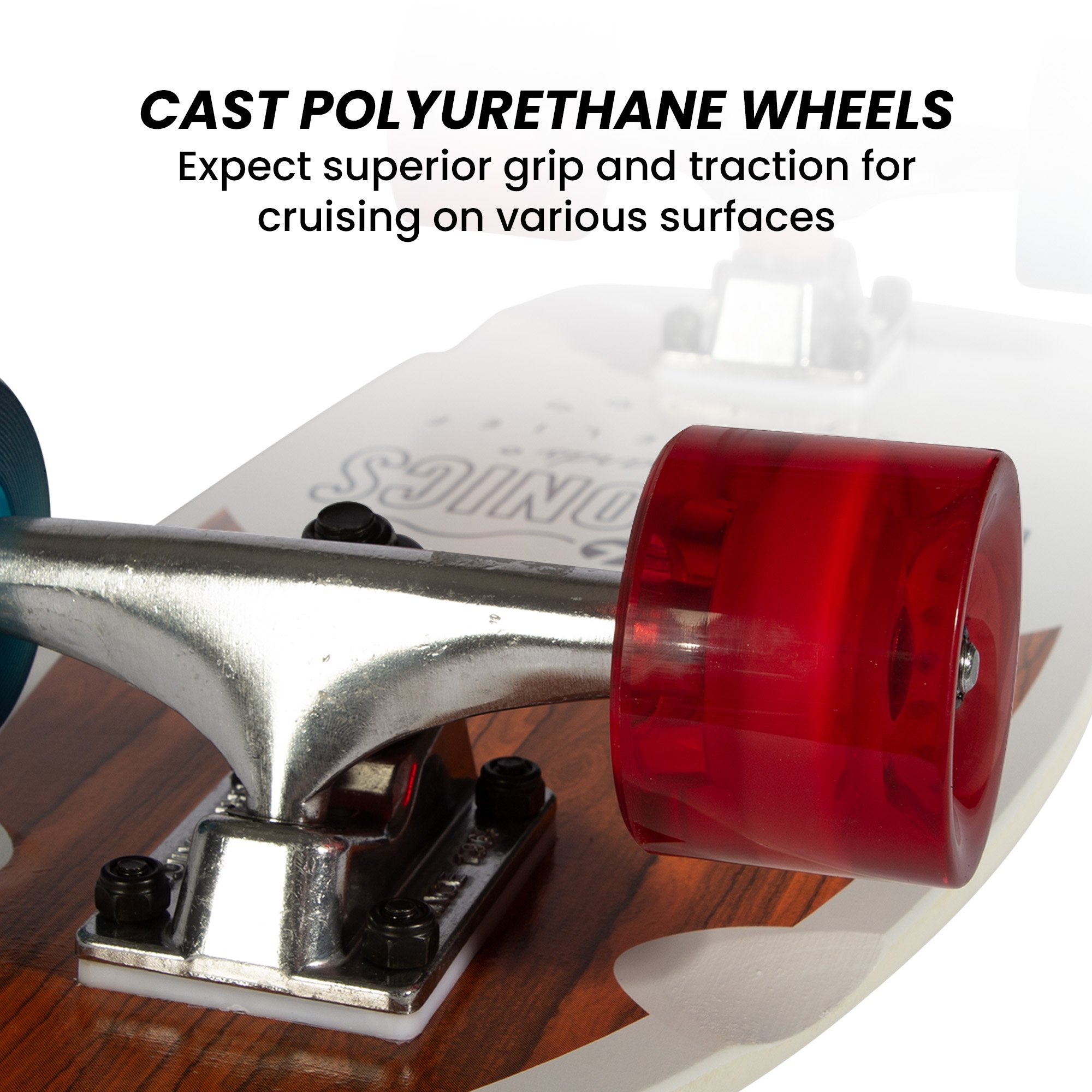 - Trucks: 5in (13cm) heavy-duty aluminum