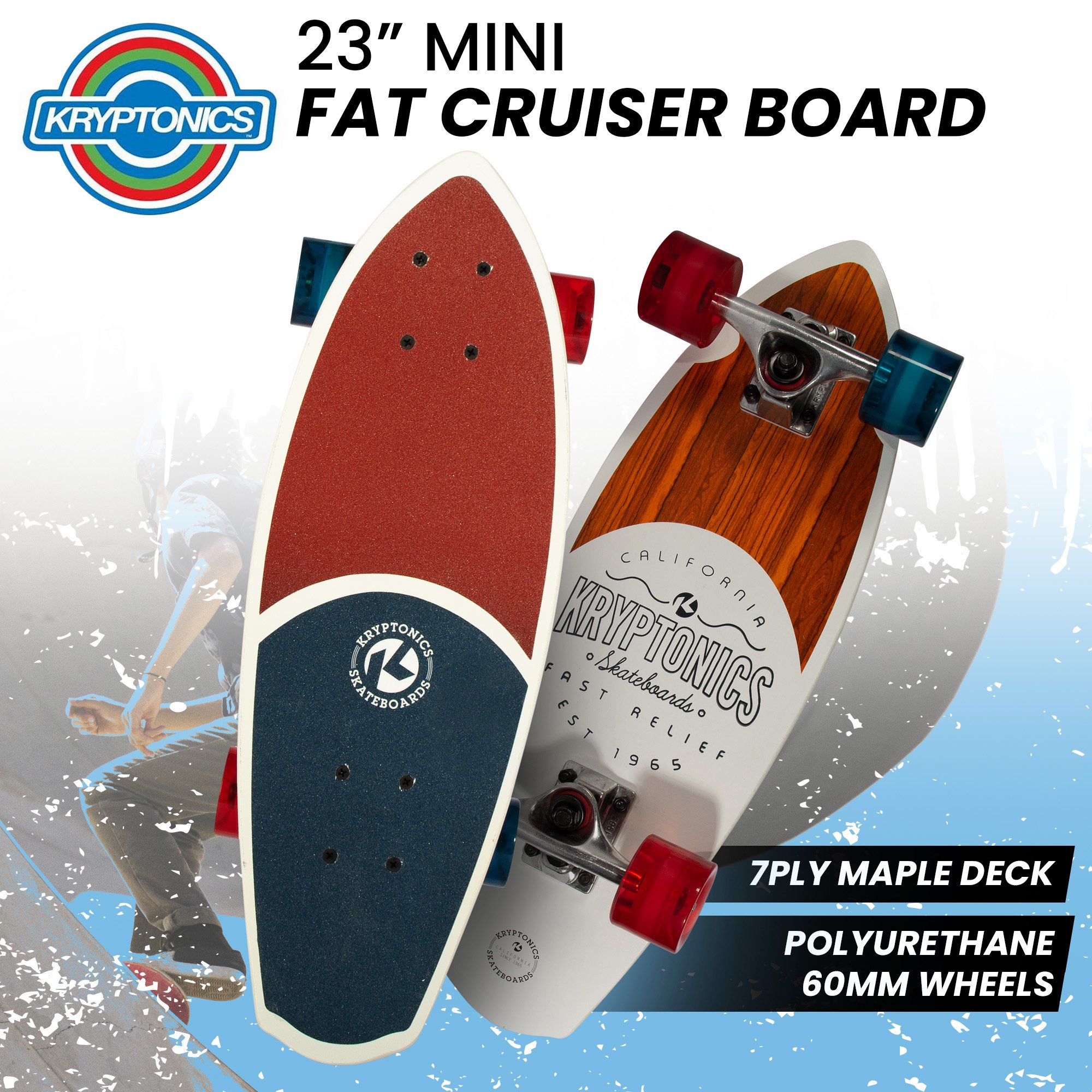 Unleash urban adventures with the Kryptonics Mini Fat Cruiser Board—engineered for smooth carving and ultimate control, its 23-inch deck and patented features promise effortless gliding and secure storage.