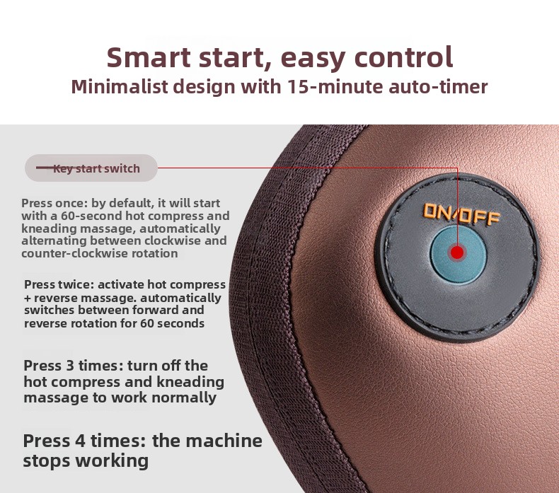 The intuitive one-button operation makes it easy to control the massager. With a single long press, you can turn the device on or off. A quick press enables you to switch the heating function or change the rotation direction, providing customizable comfort.
