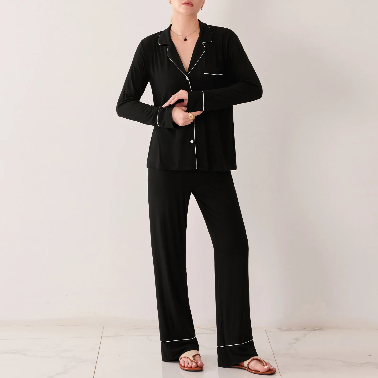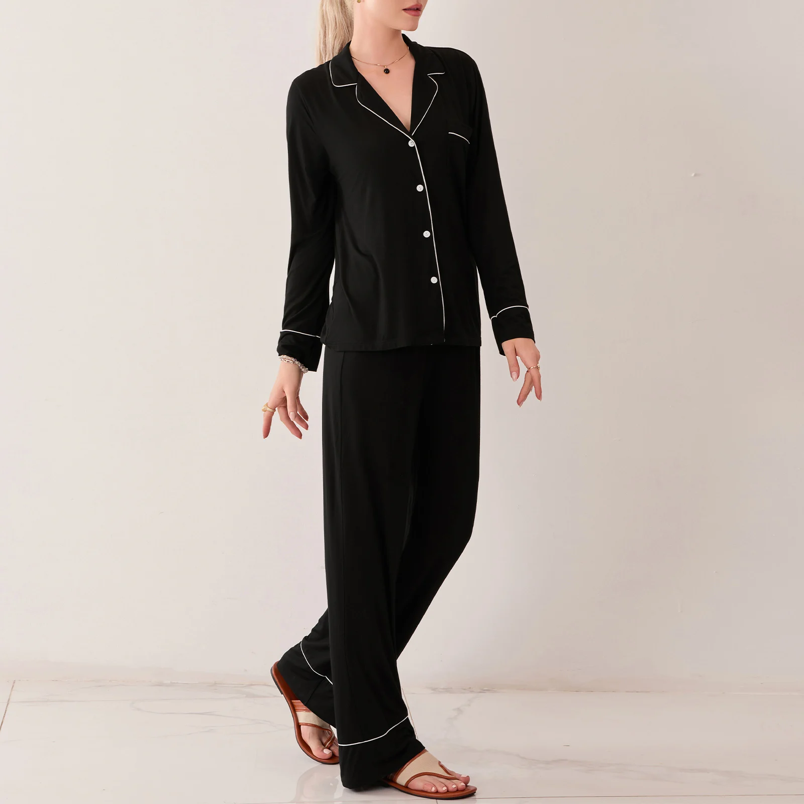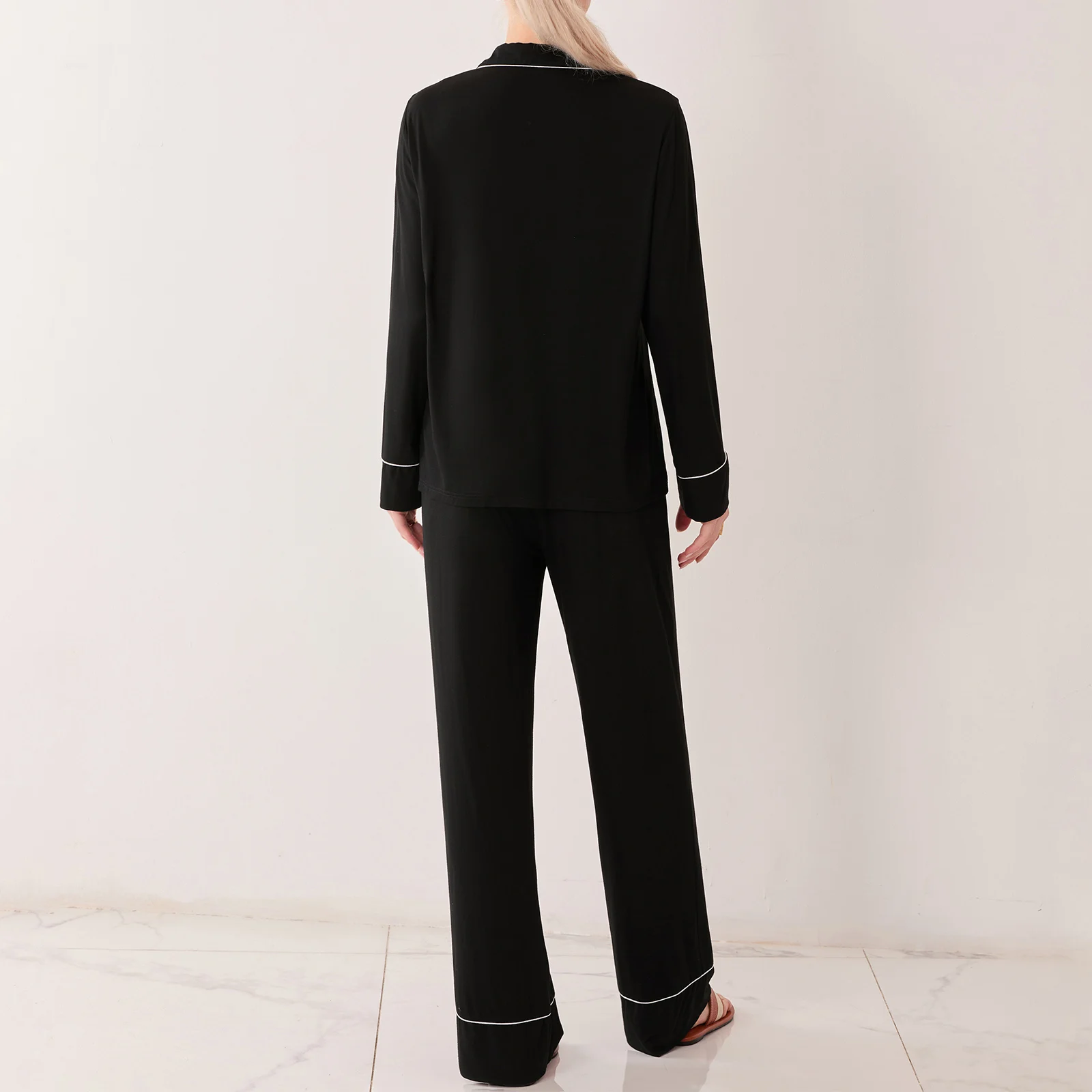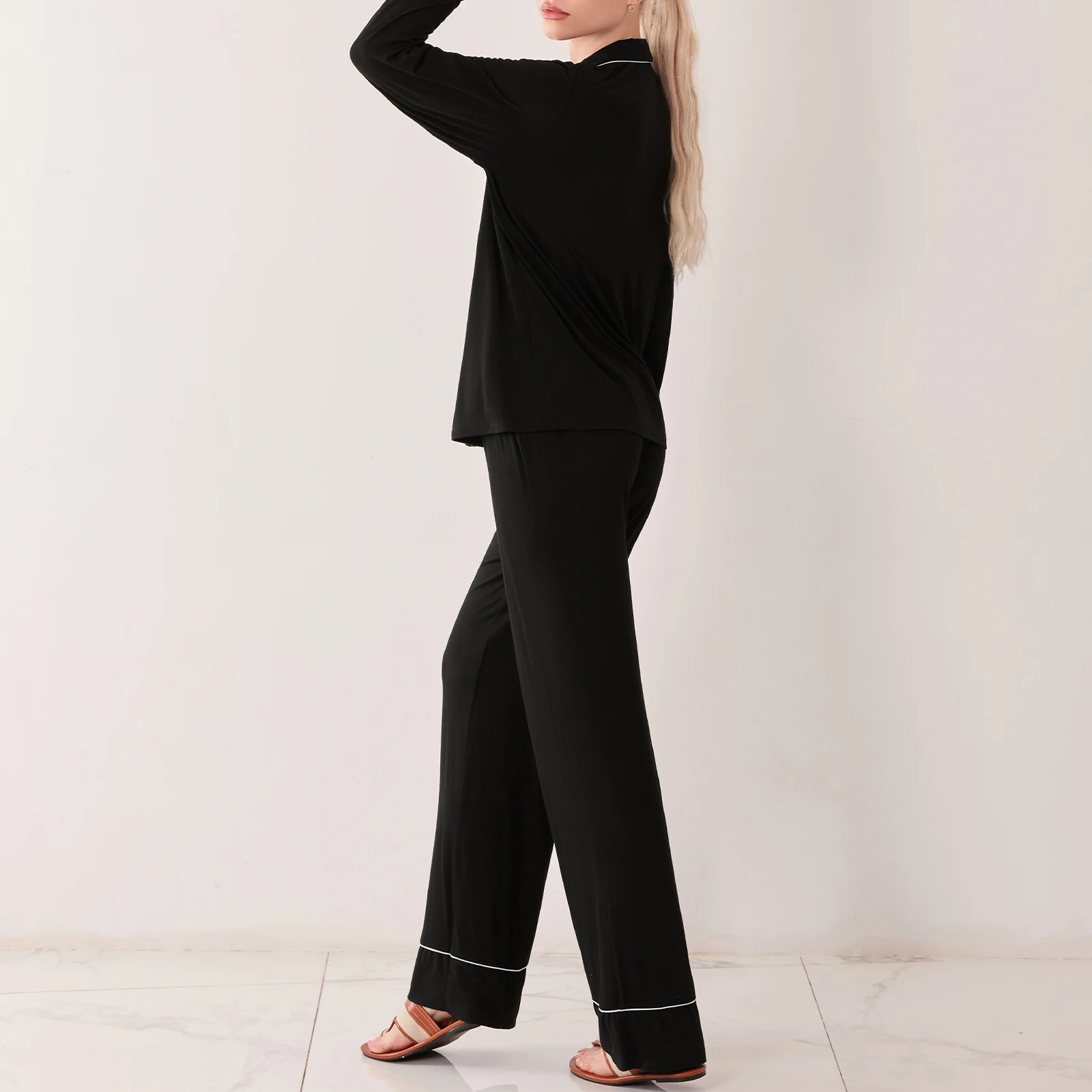 Cozy Chic: Women’s Black Pyjama Set with Button-Up Shirt & Drawstring Pants