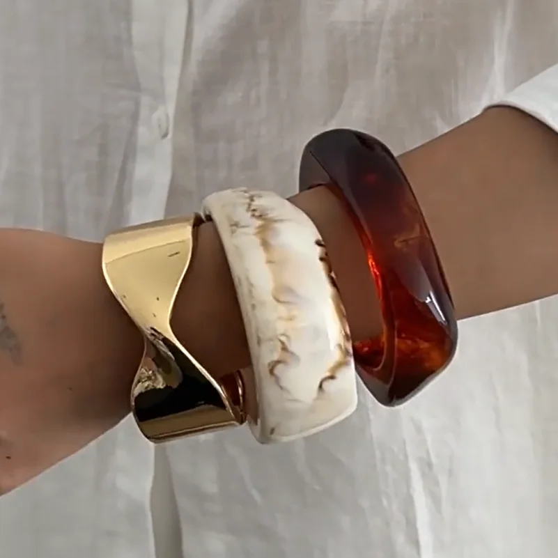 Crafted from premium acrylic resin, these bangles provide durability without sacrificing comfort. This material ensures longevity, making them a staple in your accessory collection.