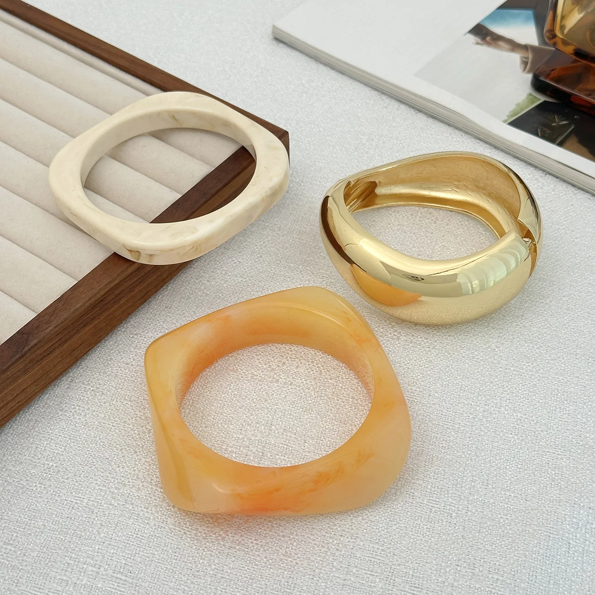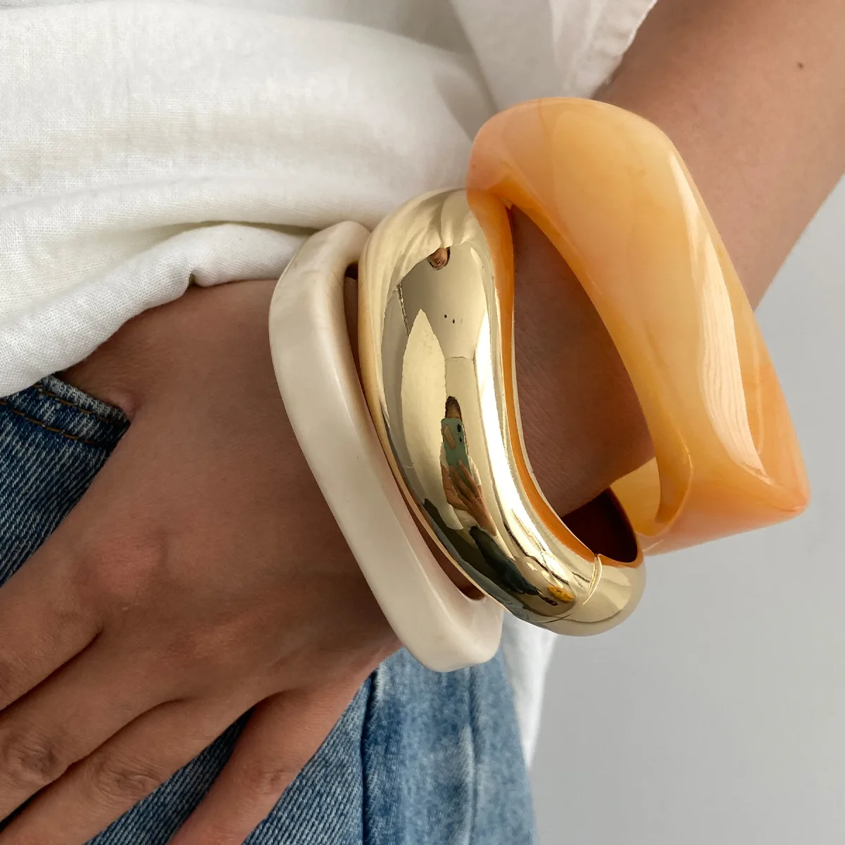 DIAZI Punk Geometric Wide Bangles – Vintage Acrylic Style