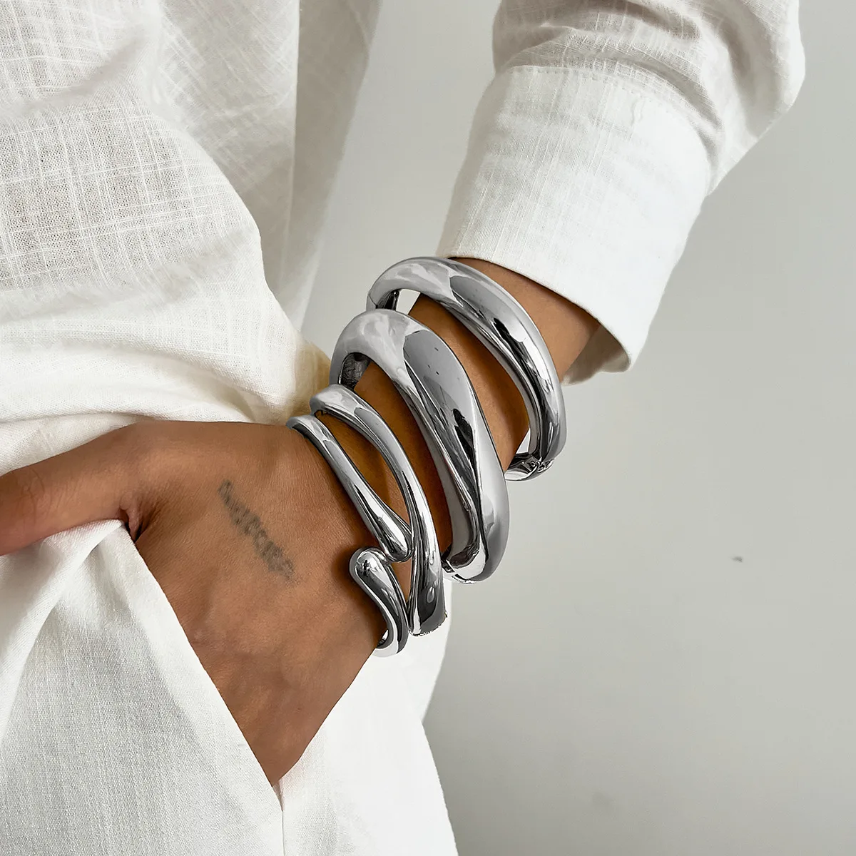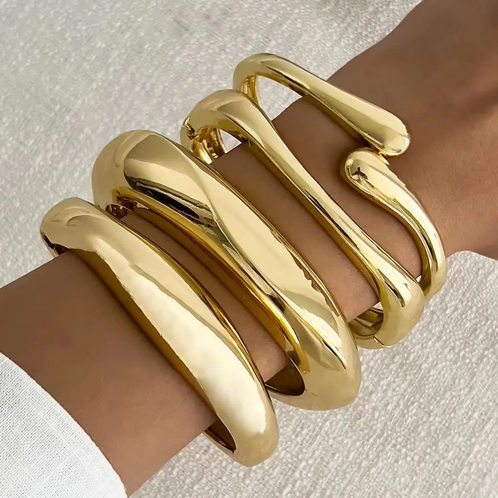 DIAZI Exaggerated Metal Cuff Bangles for Hip Hop Style