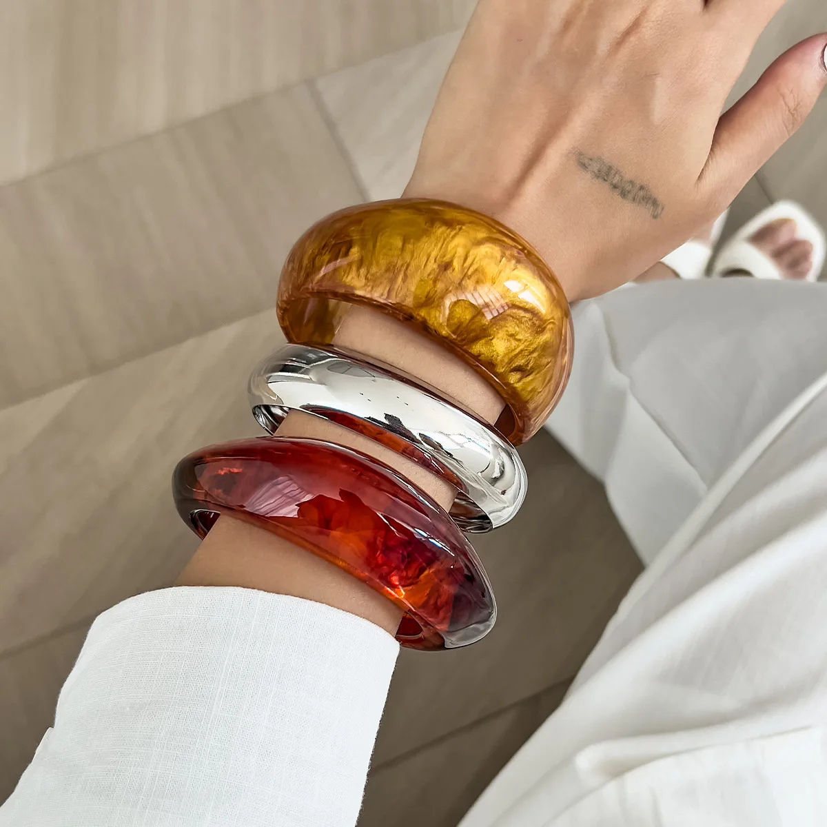 – Adaptable Size: The wide bangles can be worn stacked or individually, allowing you to express your unique style.