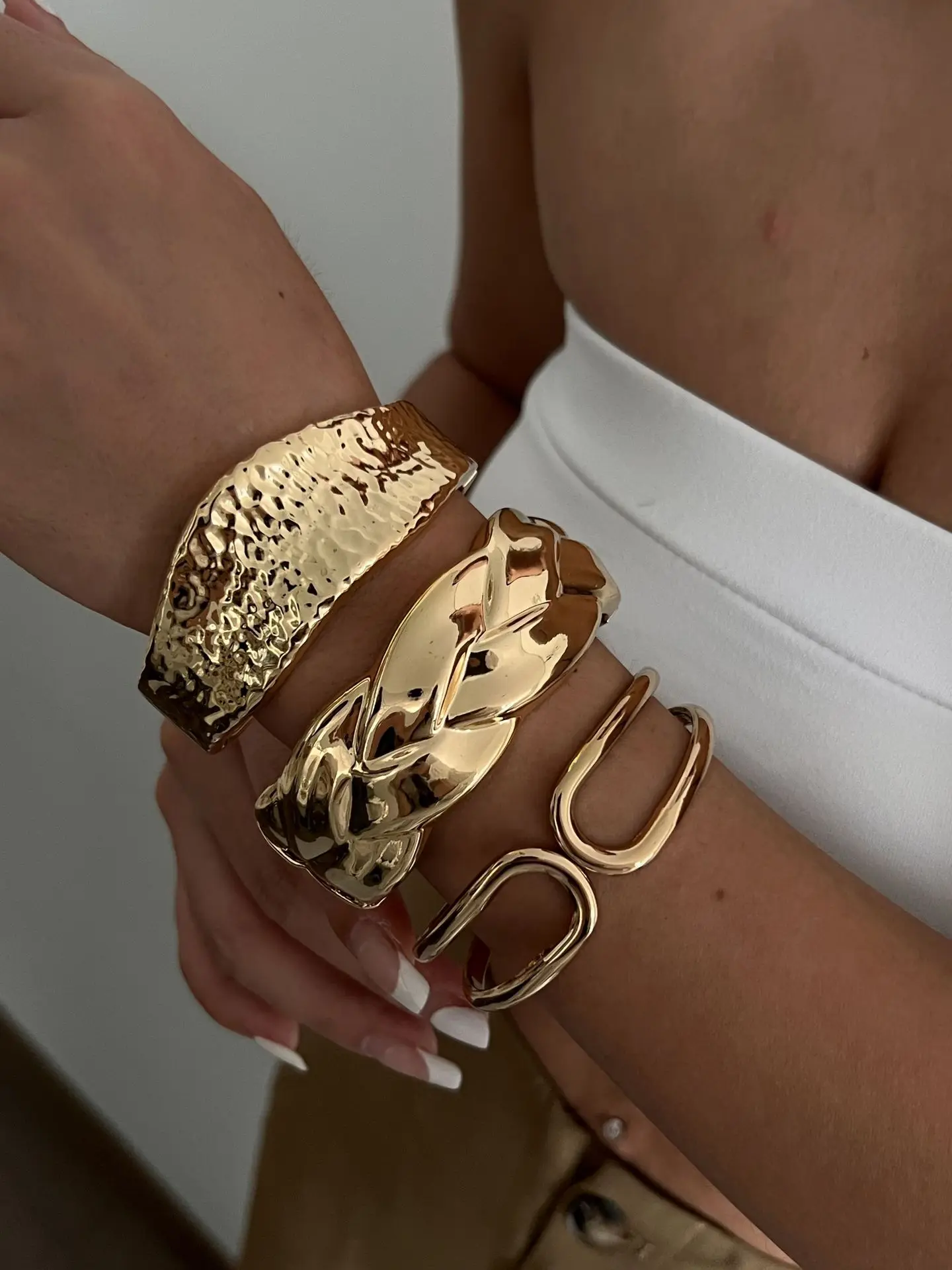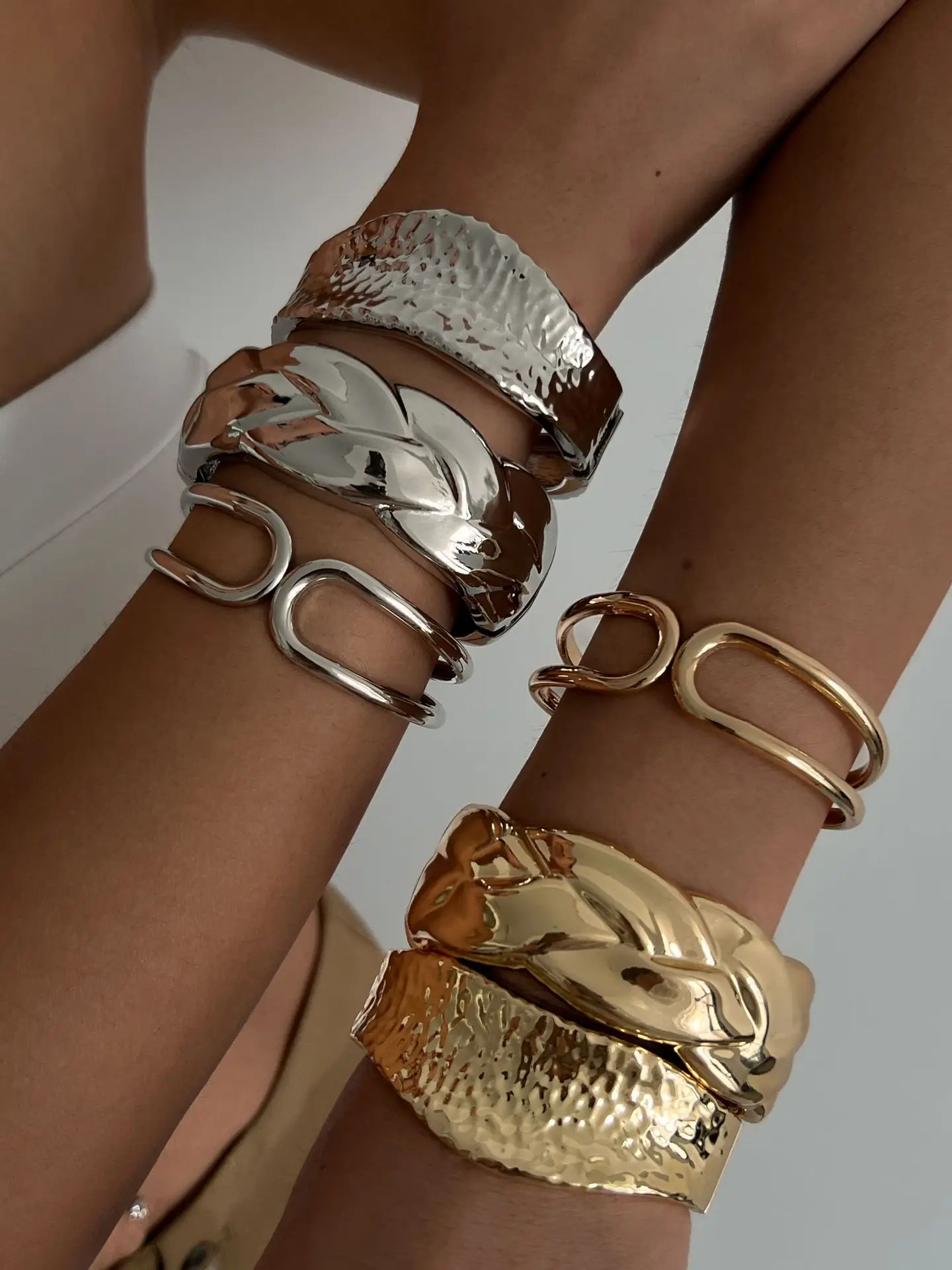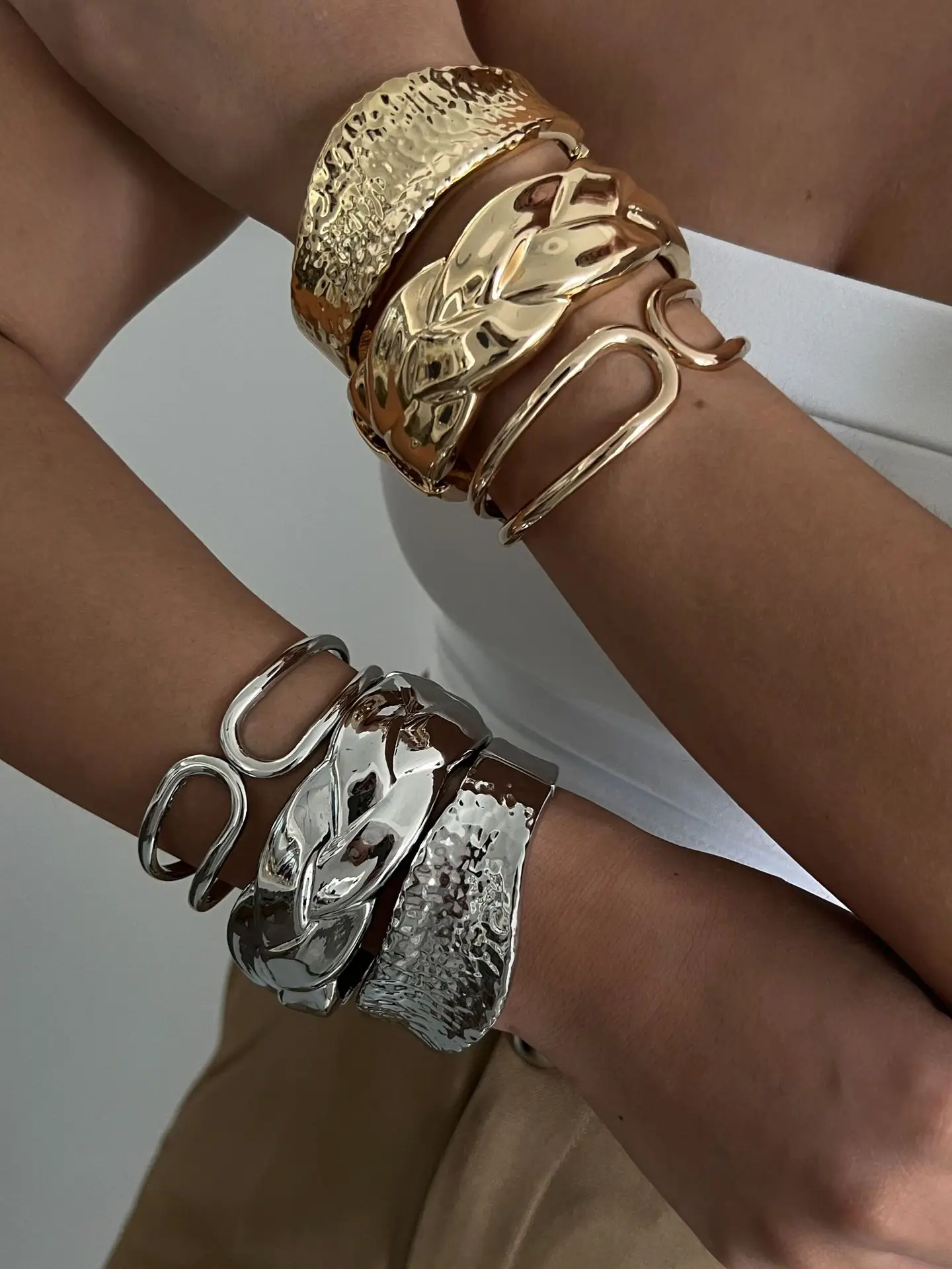 DIAZI Punk Geometric Metal Cuff Bangles for Women – Gold Silver