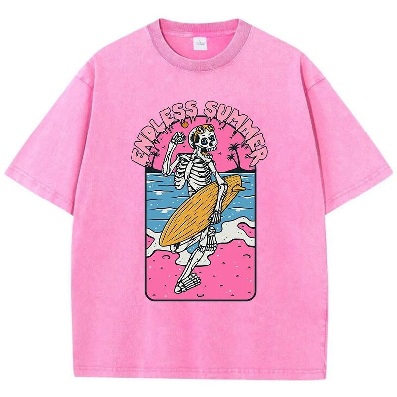 Endless Summer: Vintage Skull Surfing Cotton Oversized Unisex T-Shirt