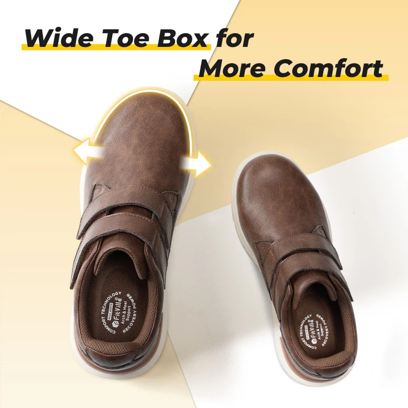 FitVille Men’s Leather Wide Walking Shoes are designed to keep you comfortable from morning to night. The combination of a wide toe area, adjustable support and cushioned responsiveness makes them ideal for men who value comfort, mobility and ease — without compromising on everyday style.