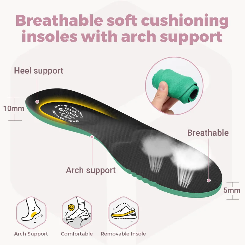 Arch support insoles help distribute pressure evenly