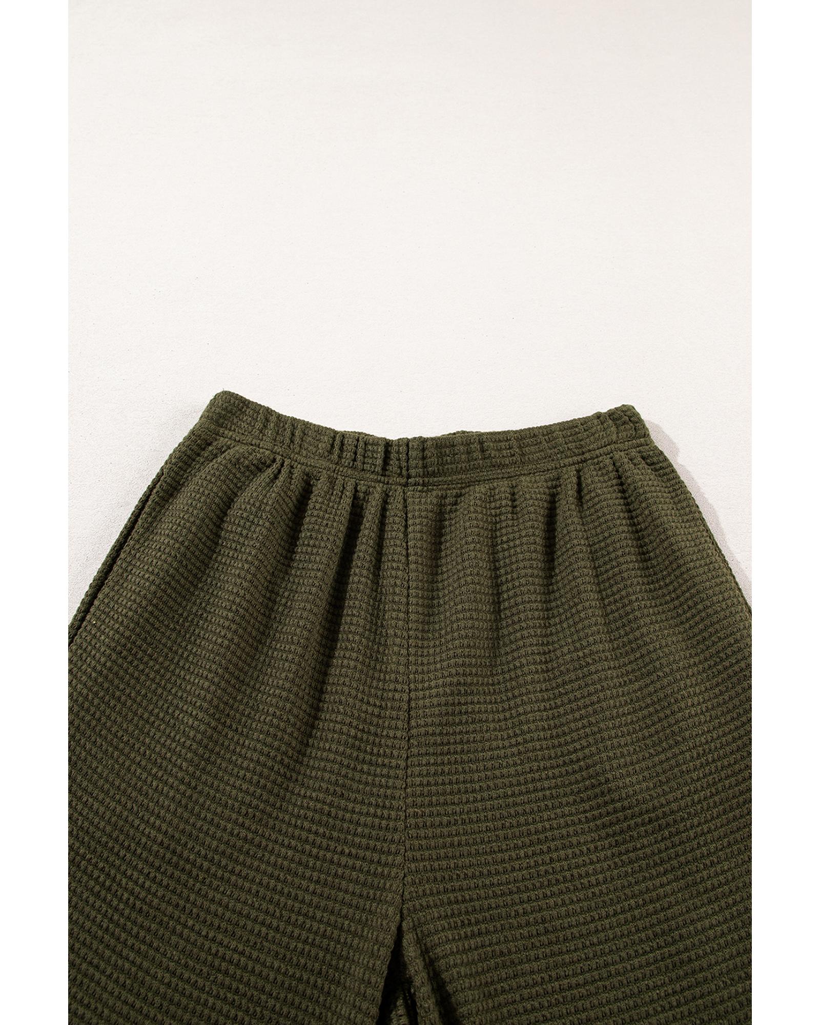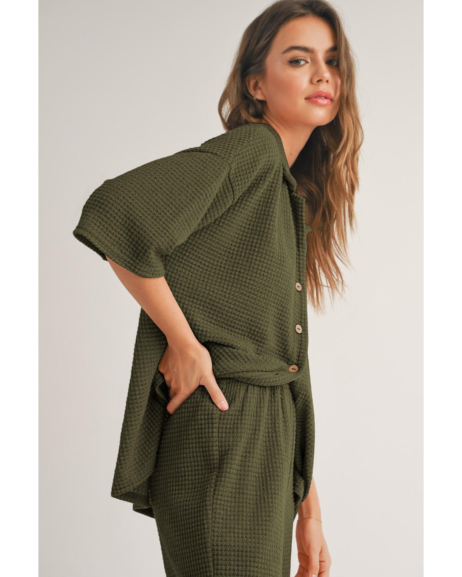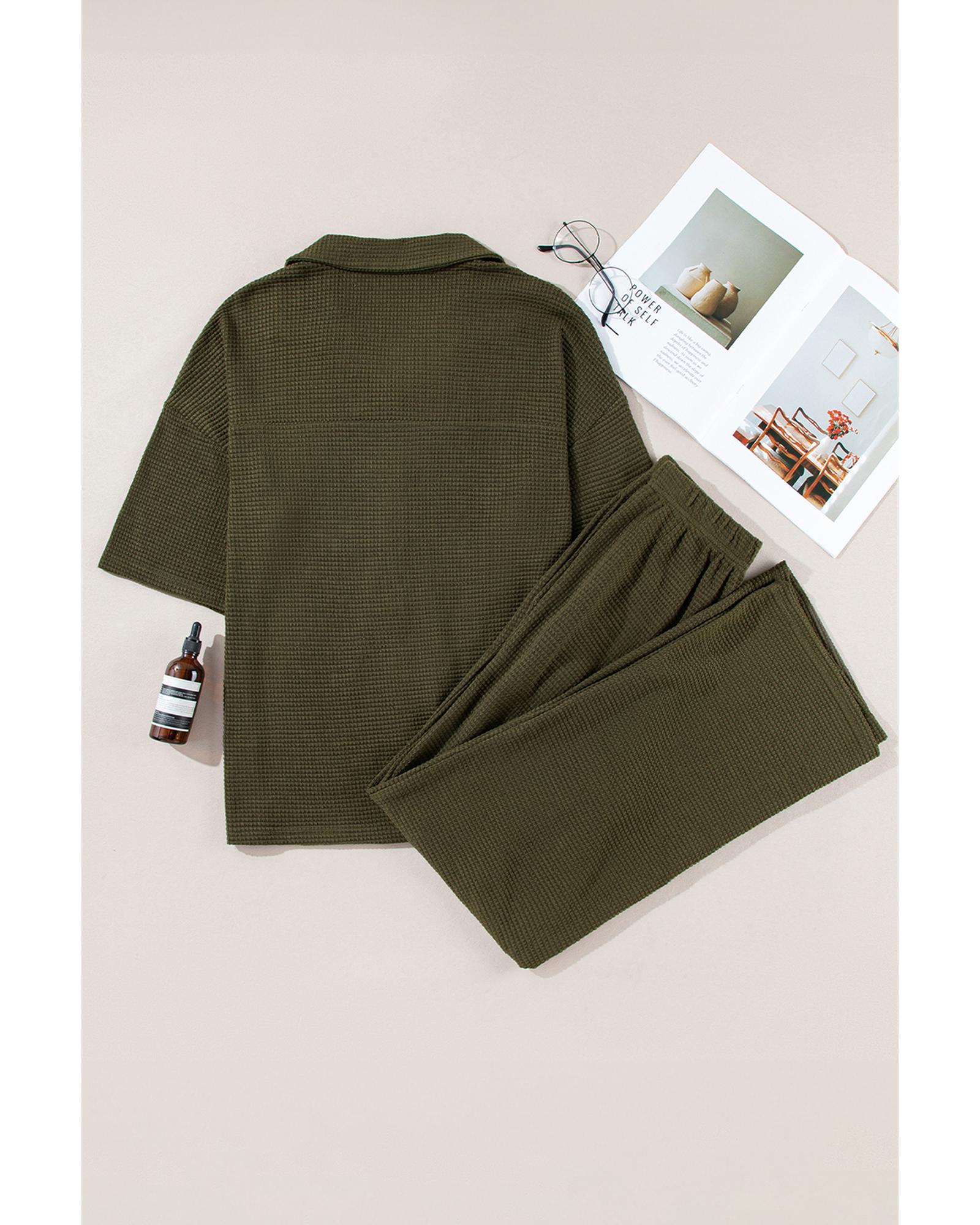 Four Leaf Clover Solid Color Textured Buttoned Shirt and Casual Pants Set