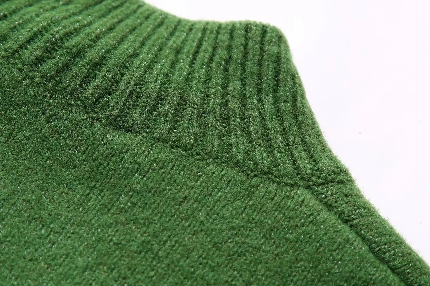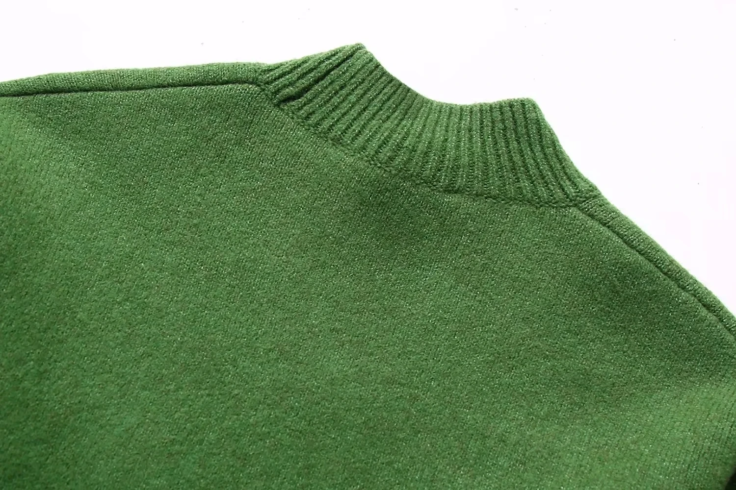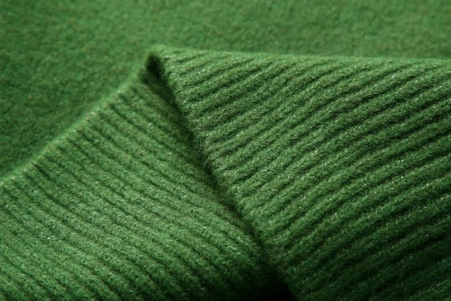 Elevate Your Autumn and Winter Wardrobe with the Luxury Green Knitted Turtleneck Cropped Sweater