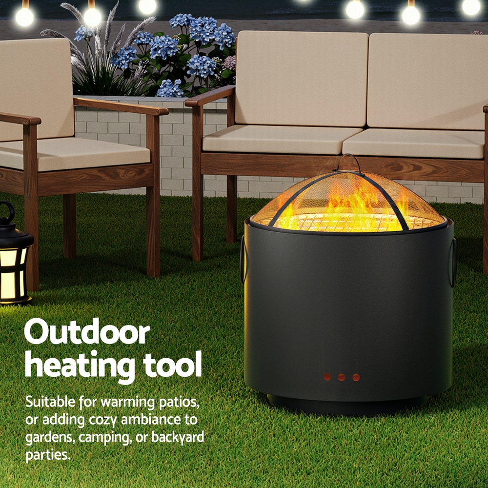 Enhance your outdoor experiences with the versatile Grillz Fire Pit BBQ Portable Deep Bowl Outdoor Fireplace. Designed for campers, patio enthusiasts, and garden lovers, this fire pit seamlessly combines functionality with style. The deep bowl design and expansive 45cm grill provide the perfect setup for cozy campfires or satisfying BBQs. Stay protected with the spark-proof mesh lid and enjoy prolonged warmth from the high-capacity fuel chamber. Easy to transport with foldable handles and effortless to assemble without tools, this fire pit is a must-have for year-round outdoor gatherings.