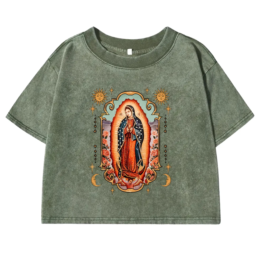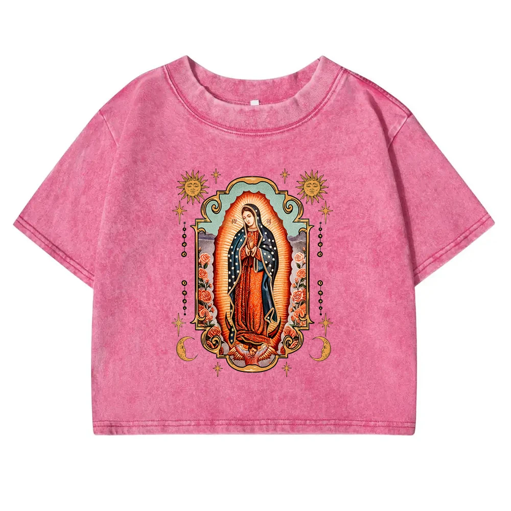 Get ready to add a touch of bold style to your wardrobe with our Guadalupe Printed Women’s T-Shirt. This summer-ready crop tee combines comfort, retro appeal, and an eye-catching graphic that makes a statement wherever you go. Designed with a classic round neck and a washed finish, this t-shirt is the perfect piece to embrace casual, laid-back style during the warmer months.