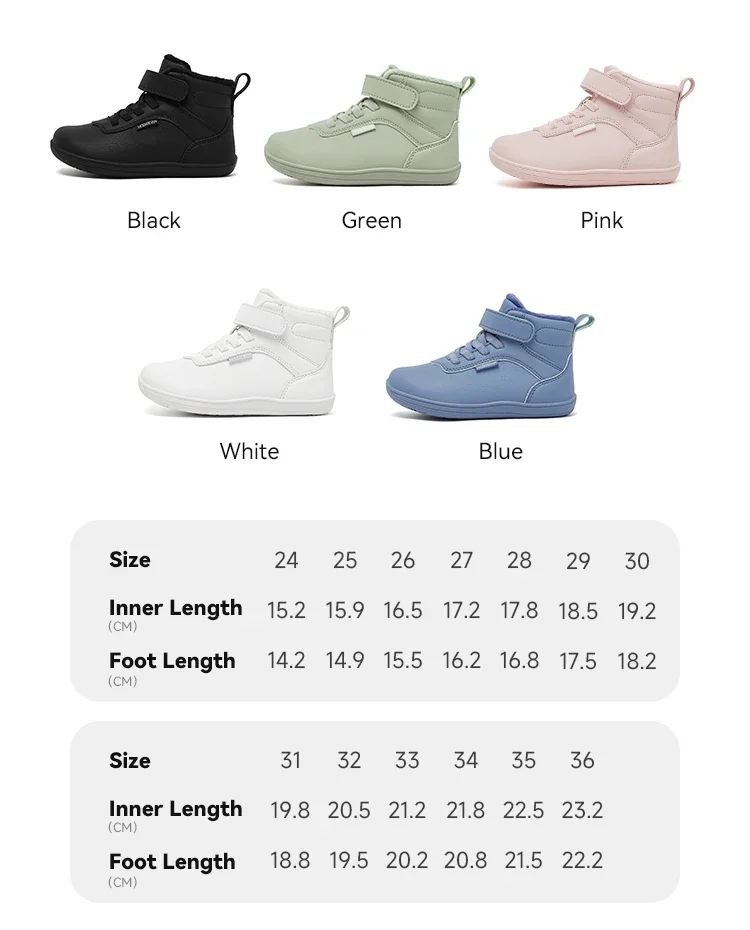 These sneakers are more than just footwear – they’re a tool for promoting healthy foot development in young children. The barefoot design encourages natural movement, while the added warmth and comfort of faux fur ensure your child’s feet stay cozy all winter long. Whether for everyday use or outdoor adventures, these shoes are a must-have for the colder months.