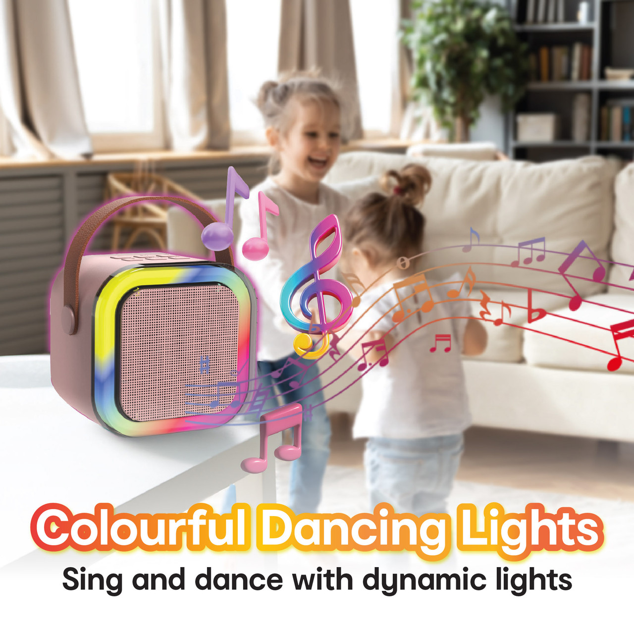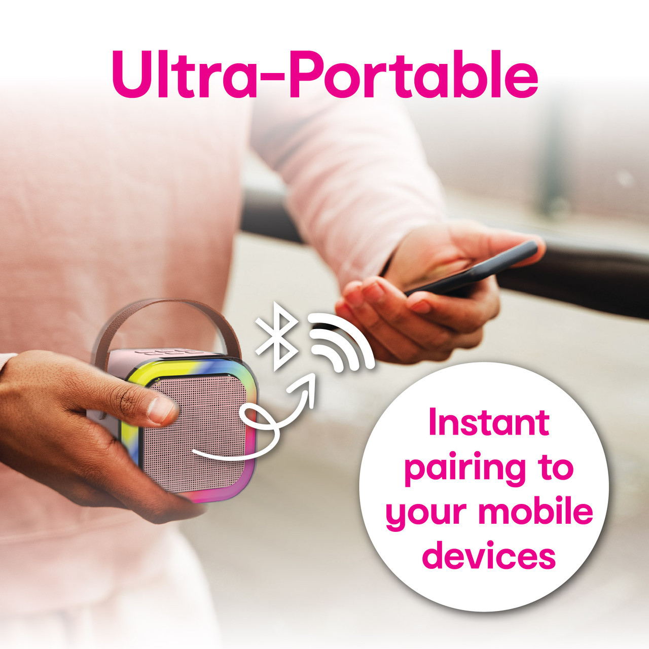Mini Karaoke Speaker with 2 Mics – Pink, Bluetooth