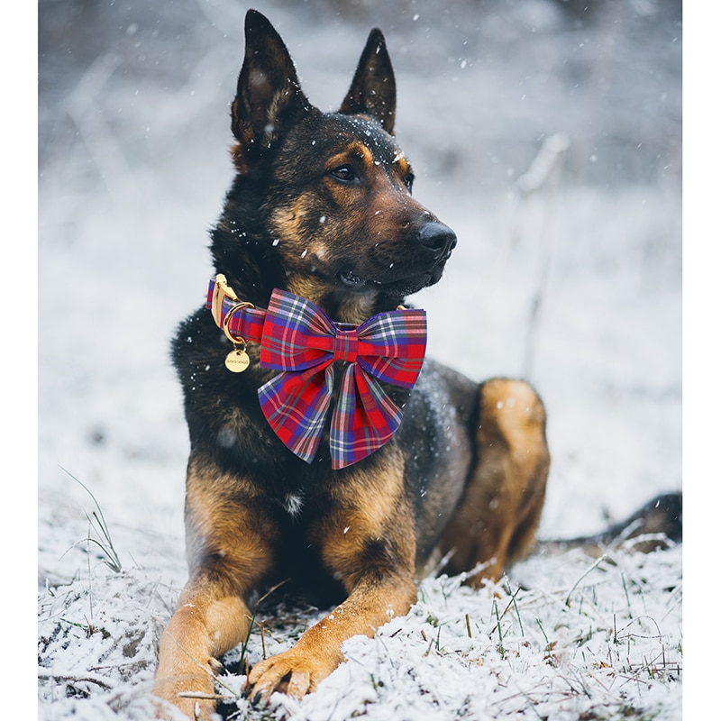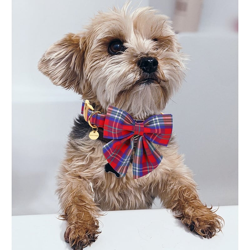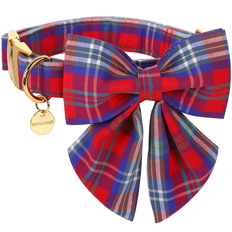 Luxurious Pet Collar with Sailor Bow Red & Blue Plaid