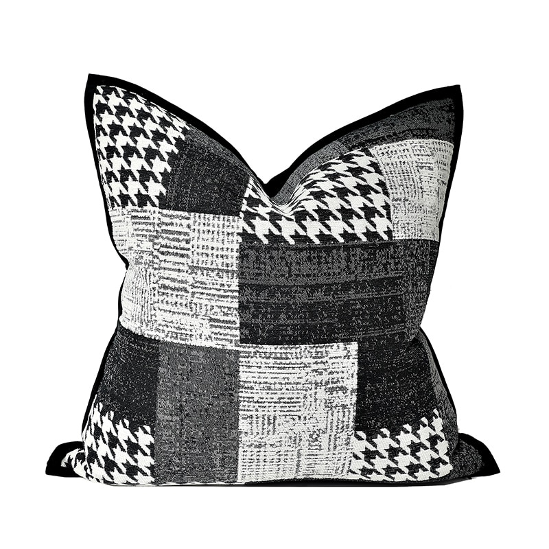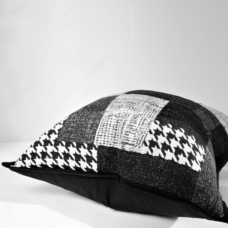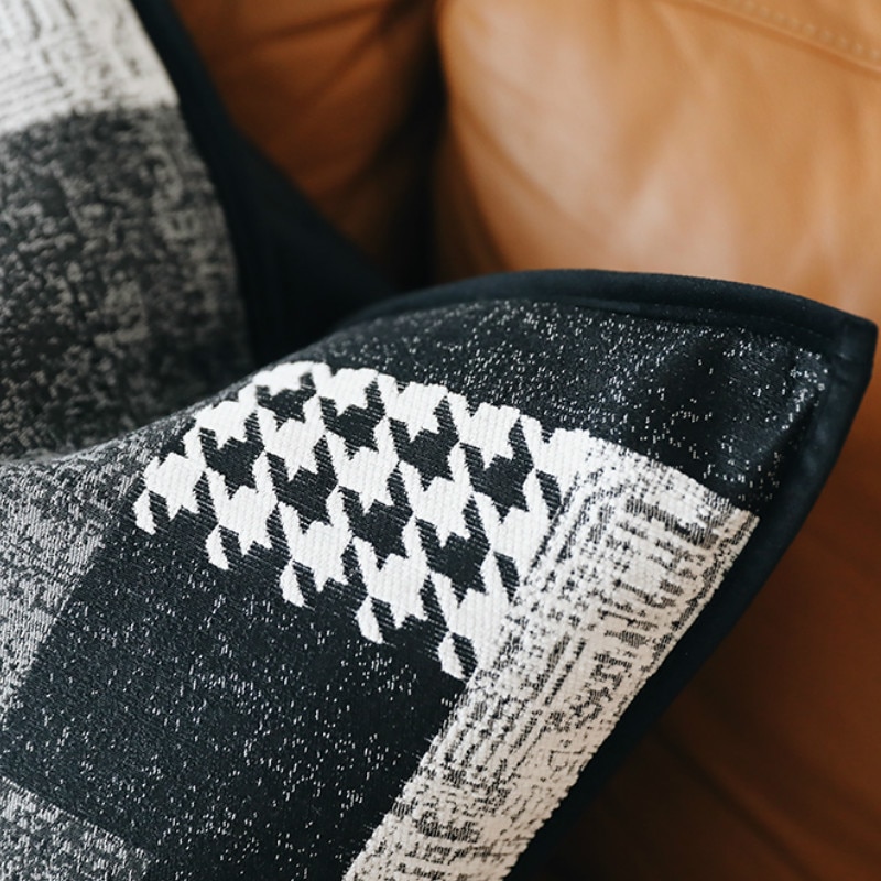 Luxury Vintage Black Chenille Houndstooth Cushion