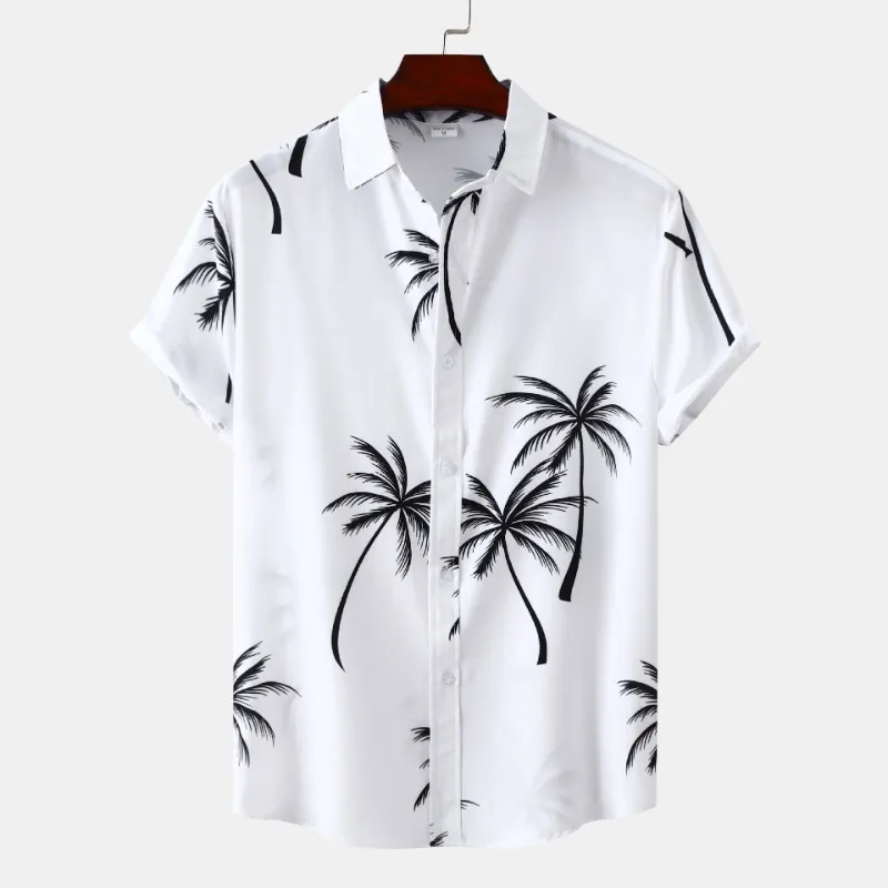 Men’s Casual Palm Tree Short Sleeve Beach Shirt – Summer New Arrival