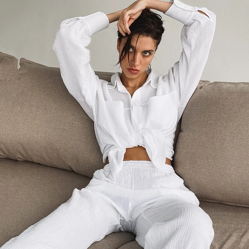 Indulge yourself in luxurious comfort with the Cotton Gauze 2PCS Pajama Set for Women. Perfect for cozy nights in or leisurely mornings, this sleepwear collection is essential for creating an inviting and restful atmosphere at home. Crafted from high-quality 100% cotton gauze, this pajama set offers unparalleled softness and breathability, making it the ultimate choice for your nightwear wardrobe. Available on Kouwi.com with FREE SHIPPING Australia-wide unless otherwise stated.