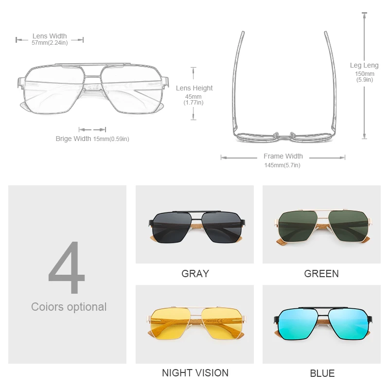 The Oi Wood Sunglasses offer more than just a stylish appearance—they are engineered for ultimate comfort and protection. Polarized lenses ensure clear vision by minimizing glare, while the UV400 protection guards your eyes against the harmful effects of the sun. The square metal frame adds a touch of modern sophistication, making these sunglasses a great accessory for any wardrobe.