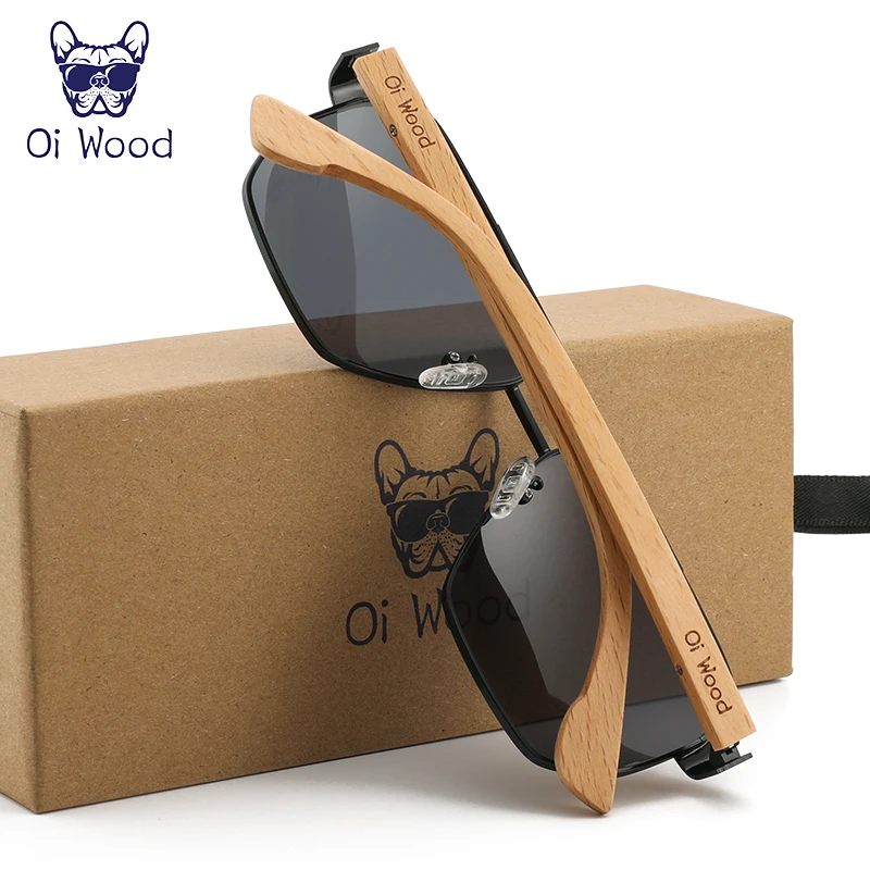 Oi Wood Sunglasses for Men and Women – Square Metal UV Protection Eyewear