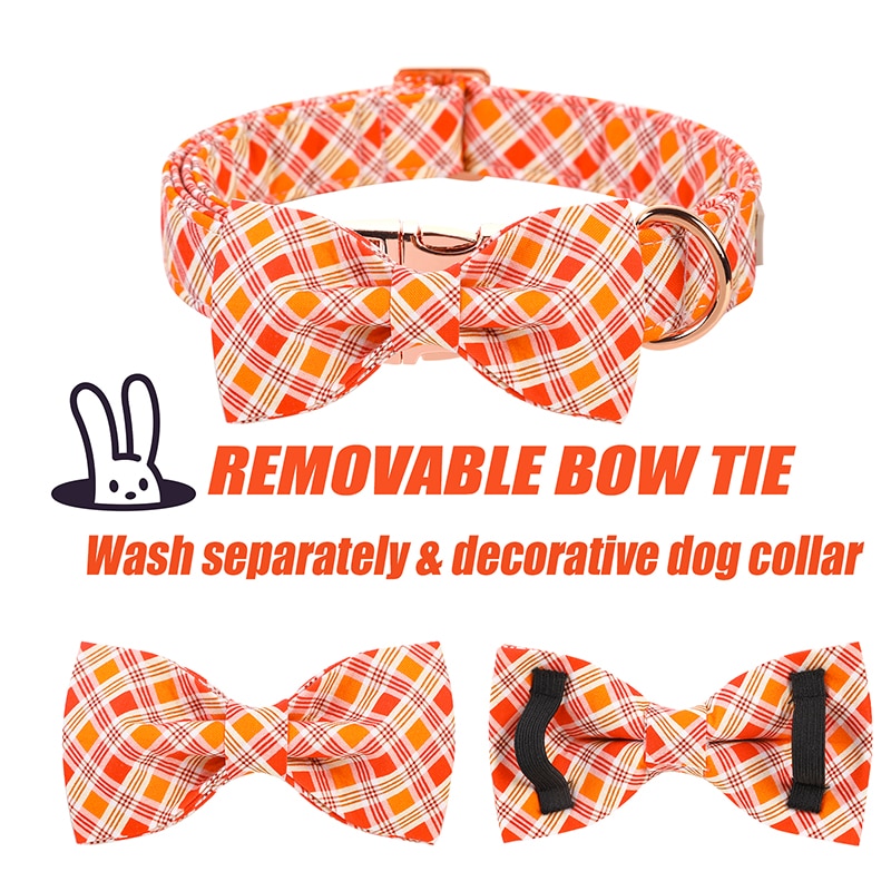 Orange Pet Collar with Bowtie Orange Plaid