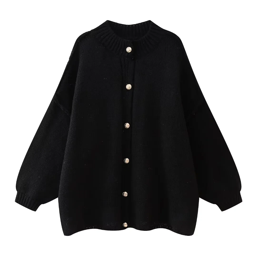 Women’s Oversized Knit Cardigan with Gold Button Detail – Stylish and Comfortable