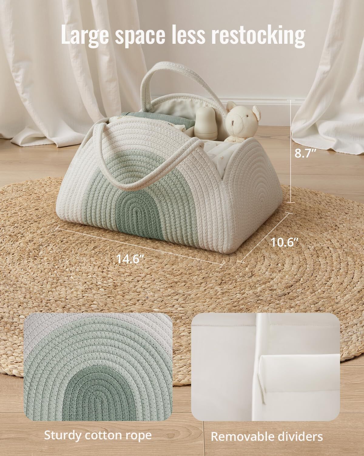 - Portable Cotton Rope Diaper Caddy Basket (Mint Rainbow)