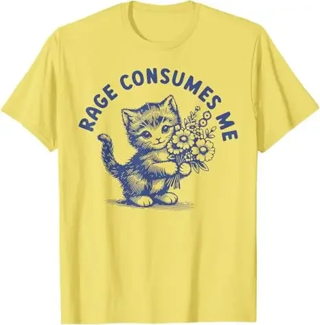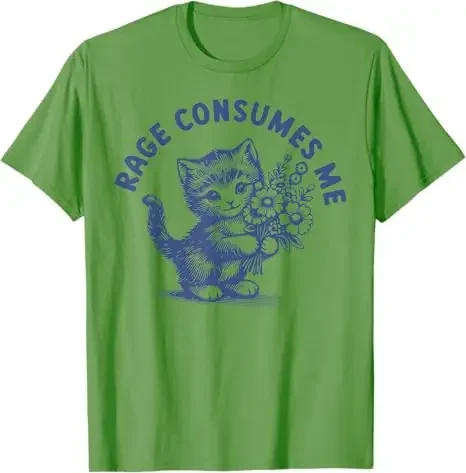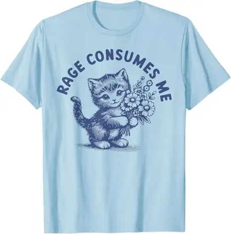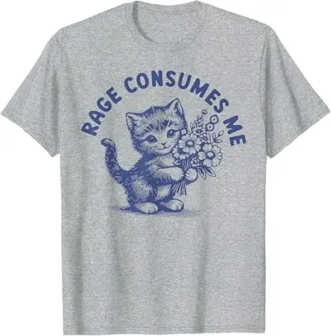 For all cat lovers with a sense of humor, the “Rage Consumes Me” cat t-shirt brings the perfect balance of style and fun. This meme-inspired graphic tee features a quirky cat design that is sure to get attention and evoke a few laughs. Made with soft, breathable cotton, it’s an ideal pick for casual wear, whether you’re out with friends or chilling at home.