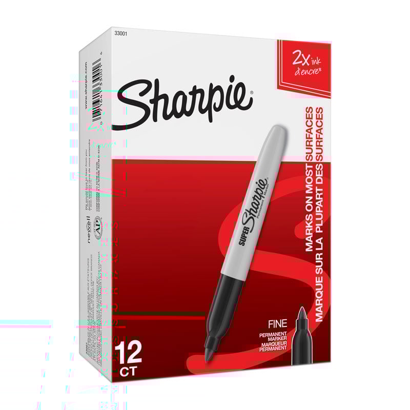 - 12 Black SHARPIE Super Fine Point Permanent Markers