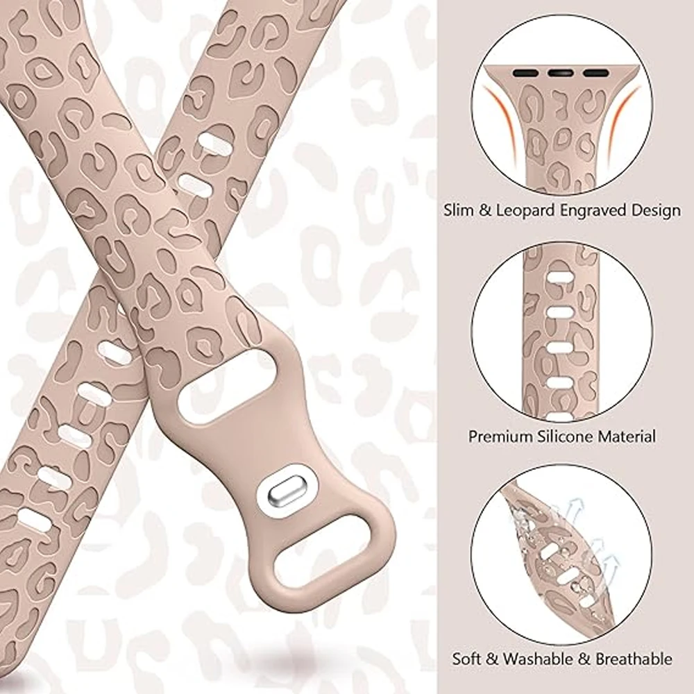 Intricate floral or leopard motifs etched into the band give your smartwatch a refined, stylish edge. -