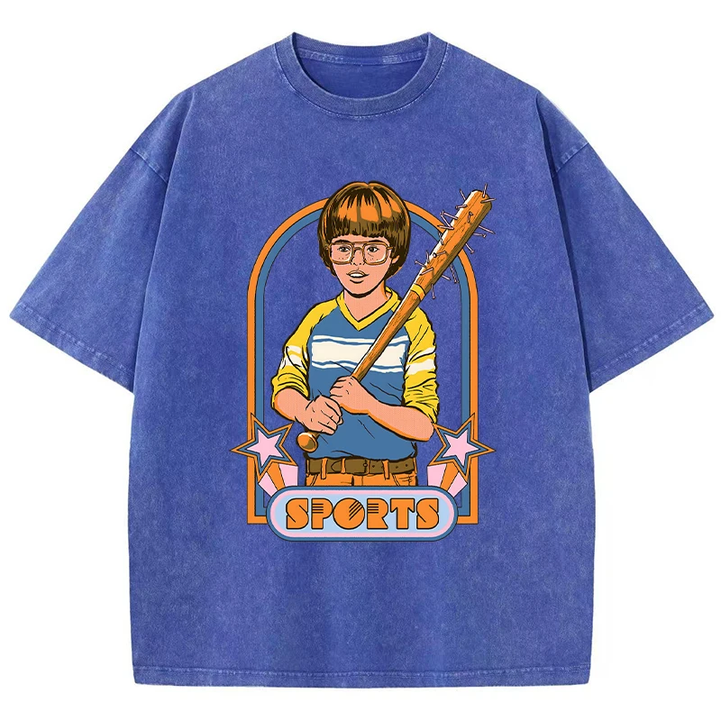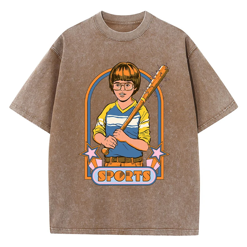Sports Boy Women’s Washed T-Shirt – Breathable Cotton Short Sleeve Tee for Casual Street Fashion