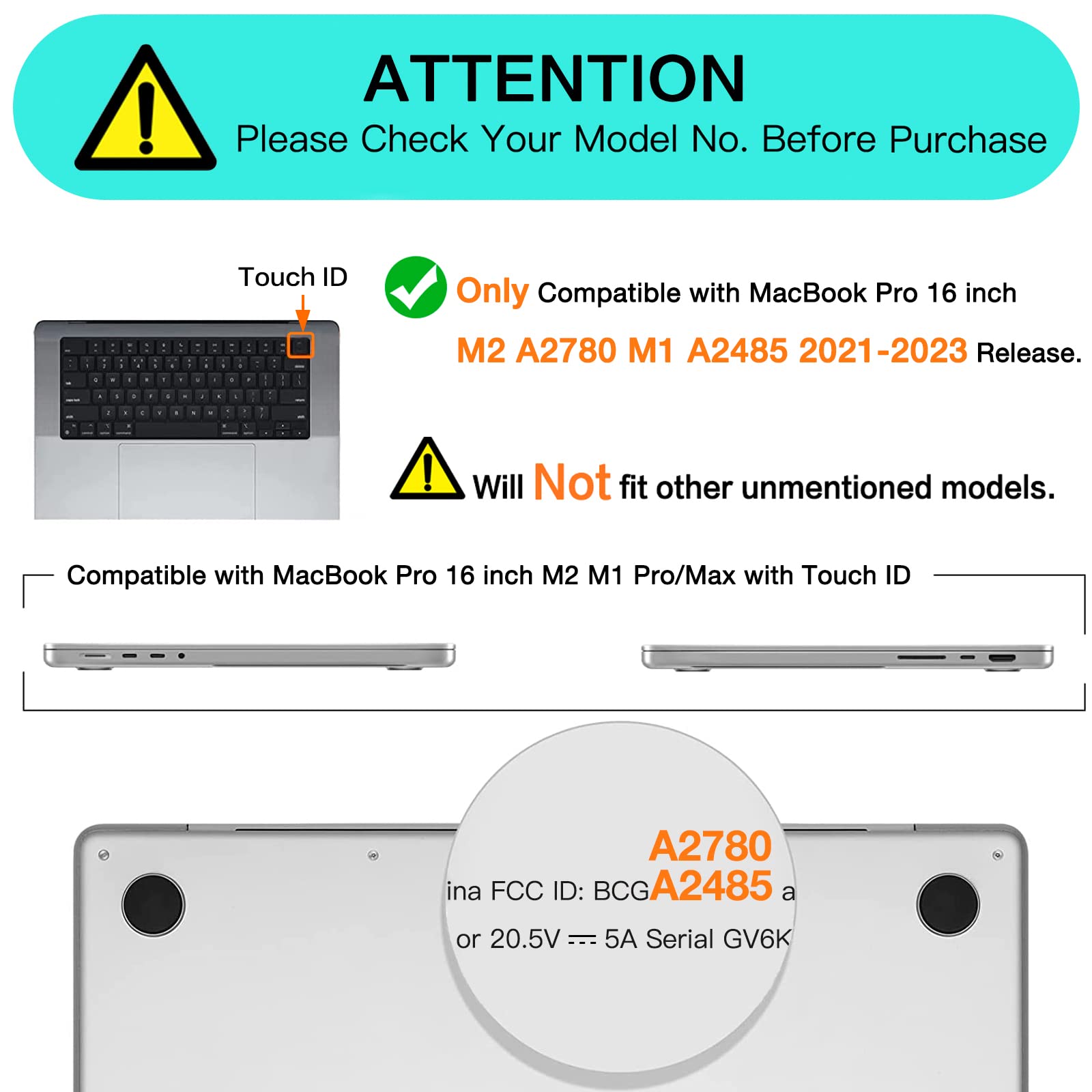 Before purchasing, ensure your laptop’s model number matches either A2780 or A2485 to guarantee compatibility. Note that this case does not fit 13”, 14”, or 15” MacBook Pro models.