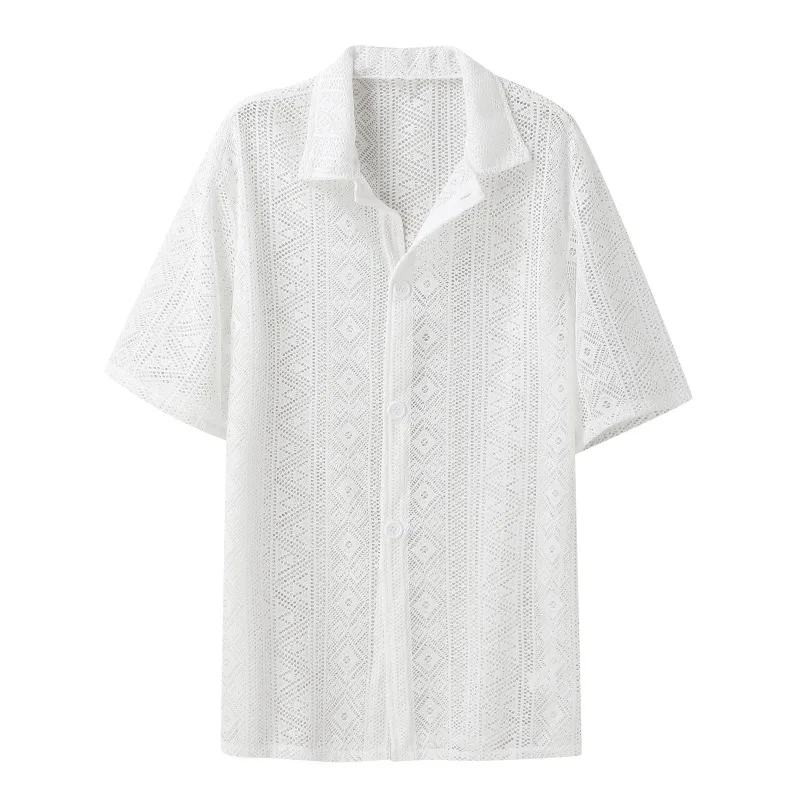 Make a bold fashion statement with our Summer New Fashion Men’s Mesh Lace Shirt. Available in black or white, this collar shirt combines modern style with comfort. The intricate mesh lace design sets you apart, ensuring you stand out in any crowd.