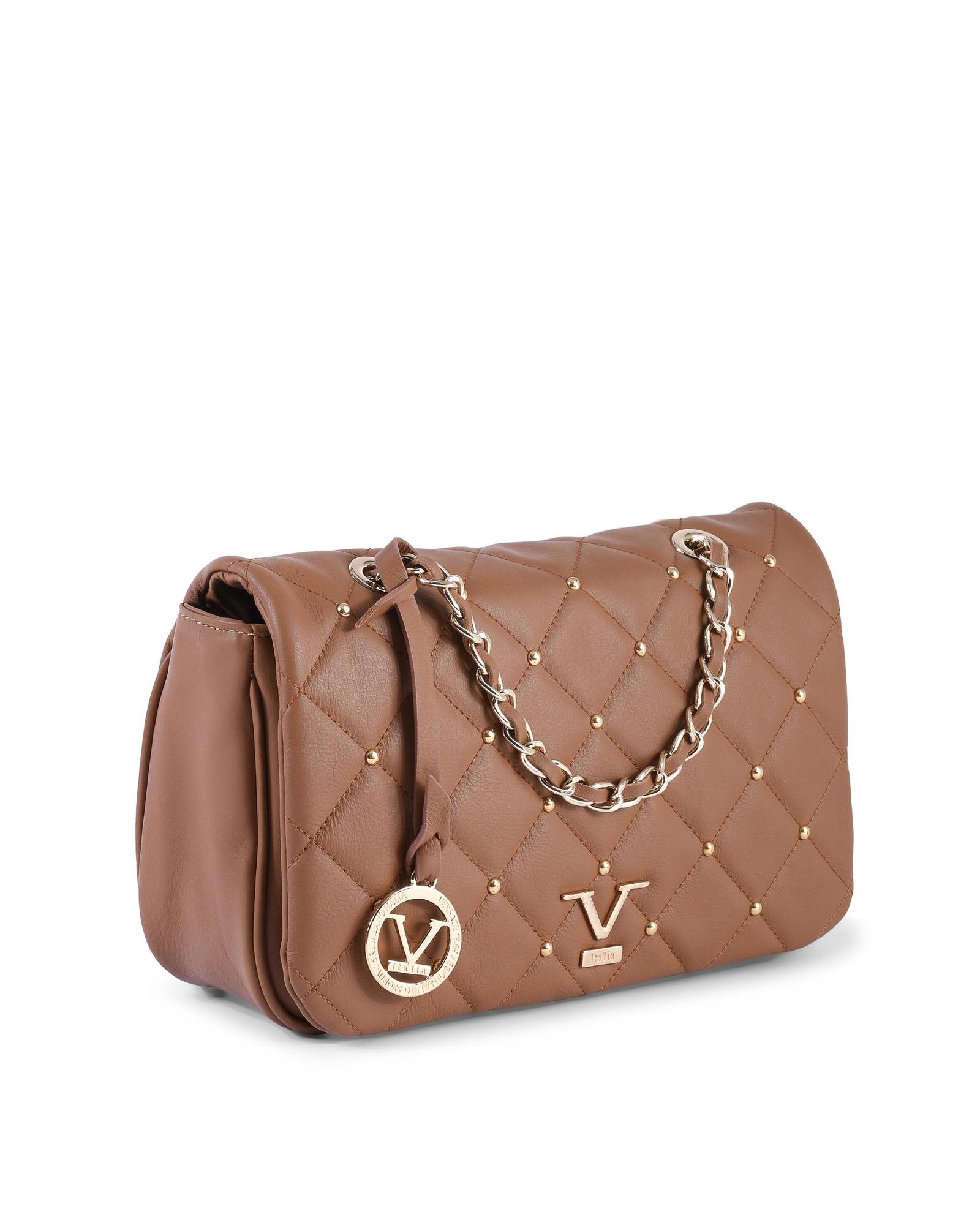 – V Italia Brown Quilted Leather Shoulder Bag with Chain Strap