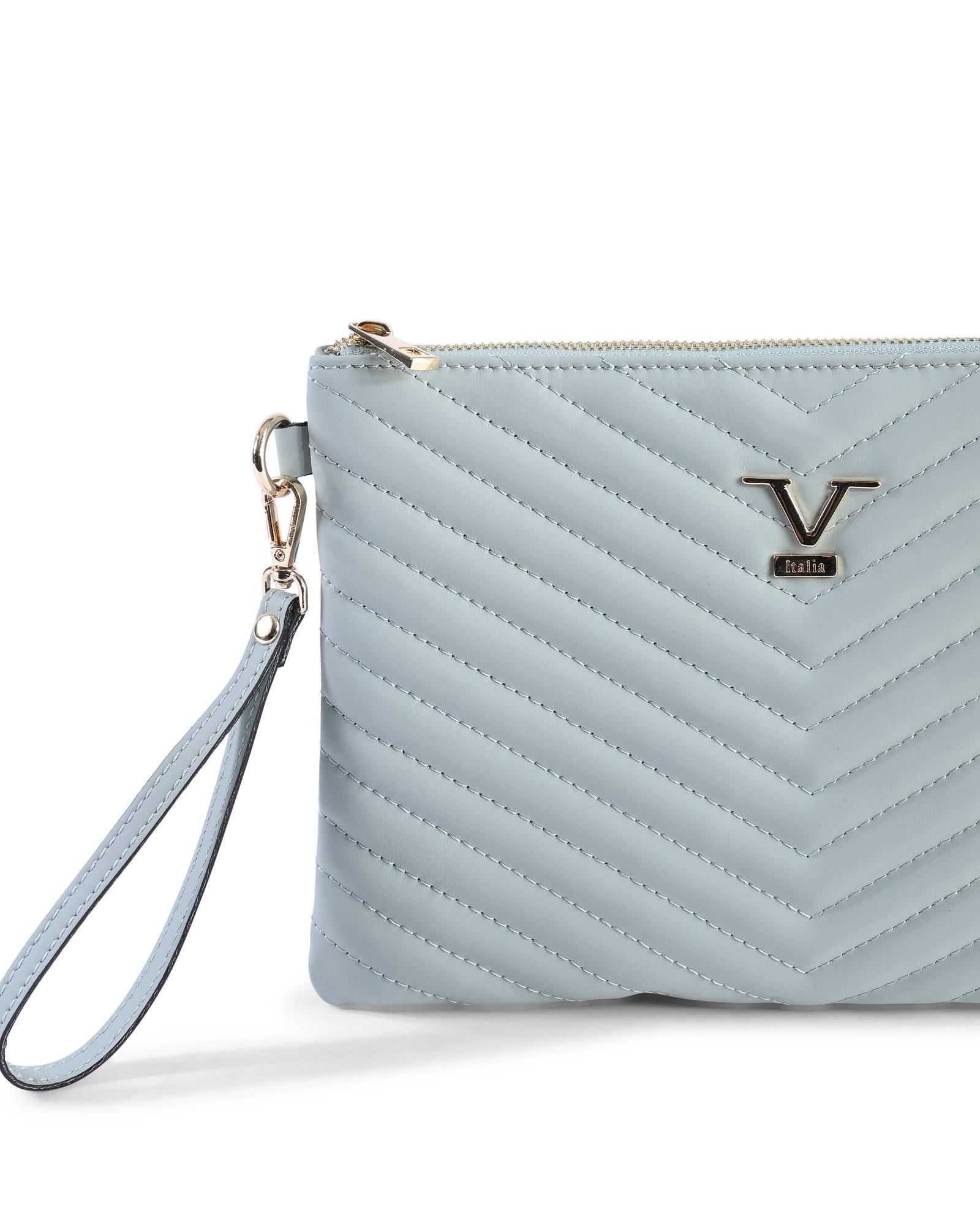 Unleash your style with the V Italia Clutch, crafted from luxurious Italian leather in a stunning light blue—elevate any outfit with its chic elegance and sophisticated charm.