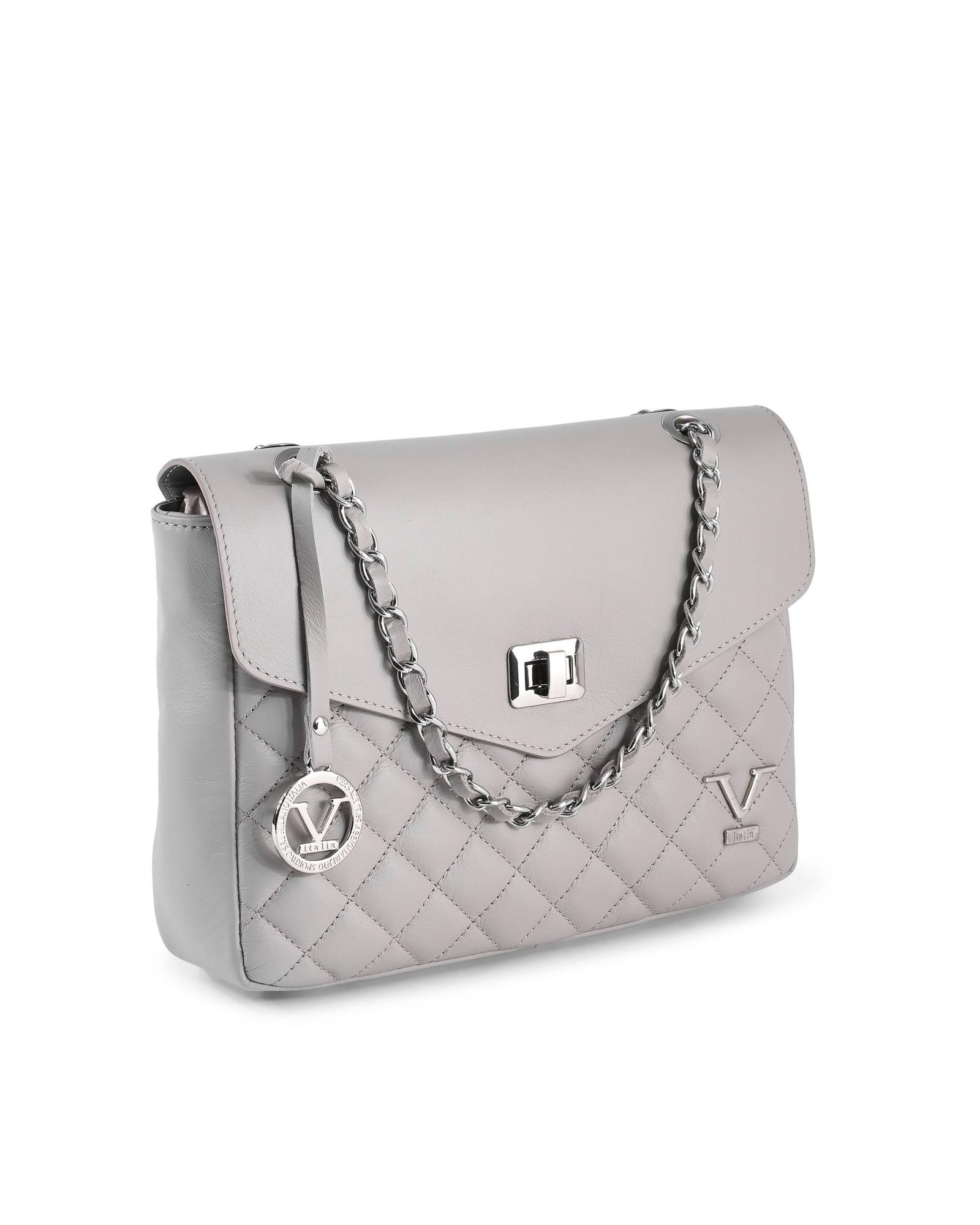 V Italia Women’s Luxury Grey Leather Shoulder Bag