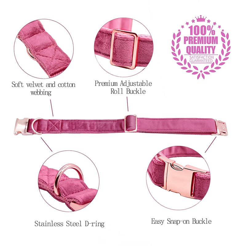 Velvet Pet Collar Hot Pink Leash Set