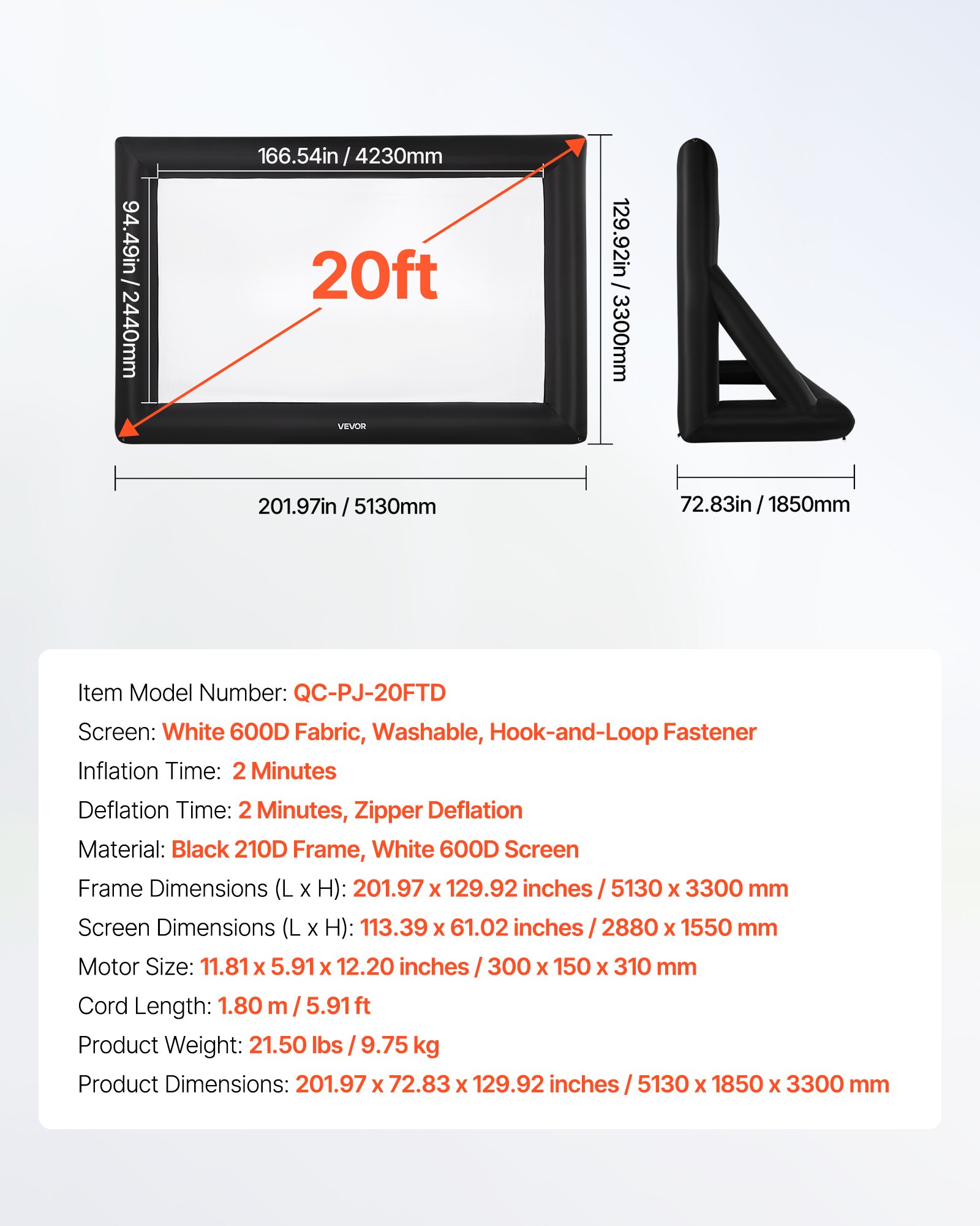 – 1 x VEVOR 20ft Inflatable Movie Screen