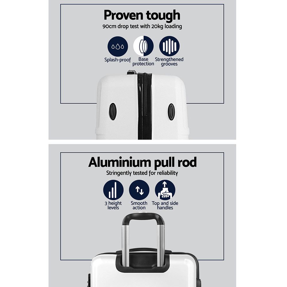 - Stylish White Finish: Modern and elegant design that stands out on the luggage carousel.