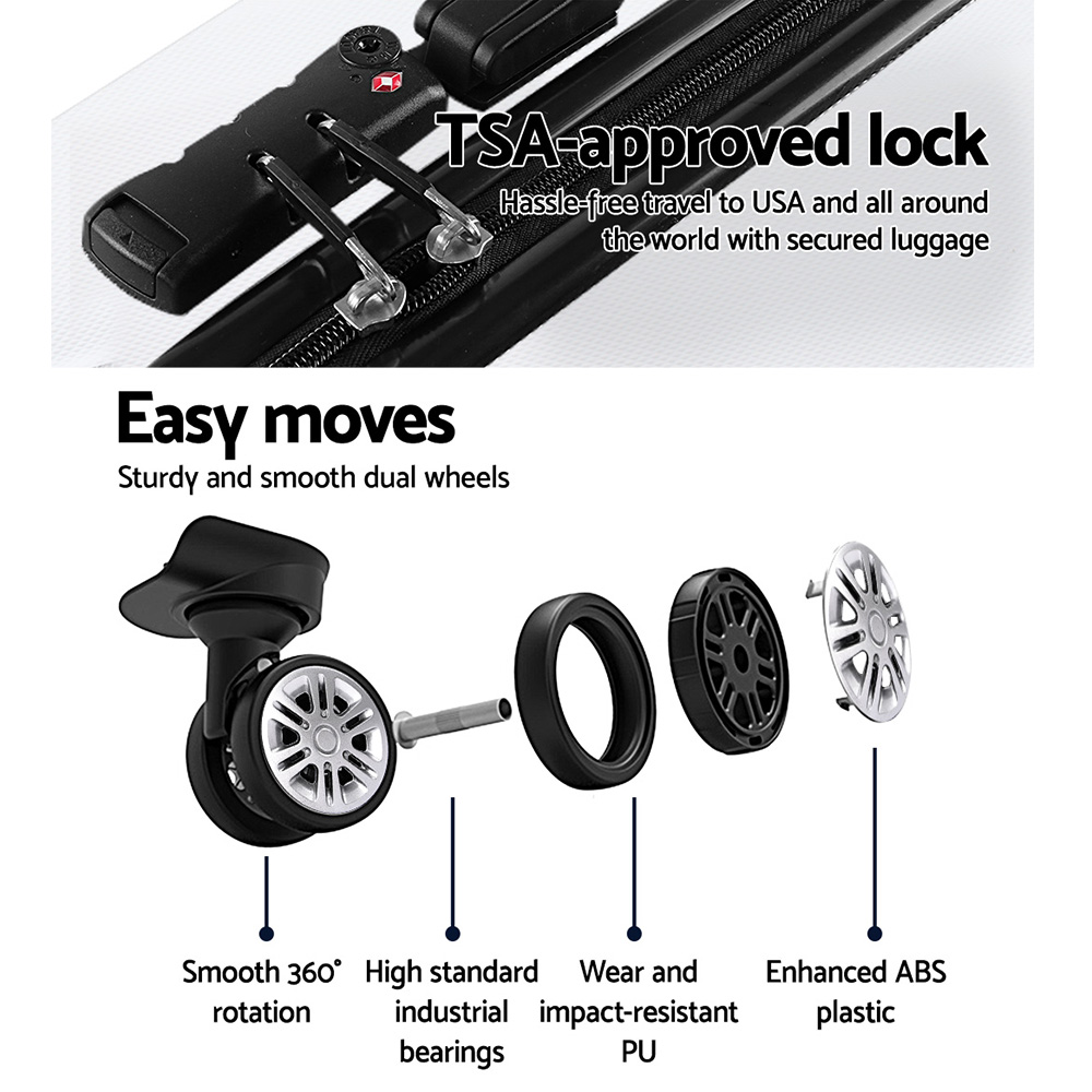 - Durable ABS Hard Shell: Lightweight yet impact-resistant, protecting your belongings from rough handling.